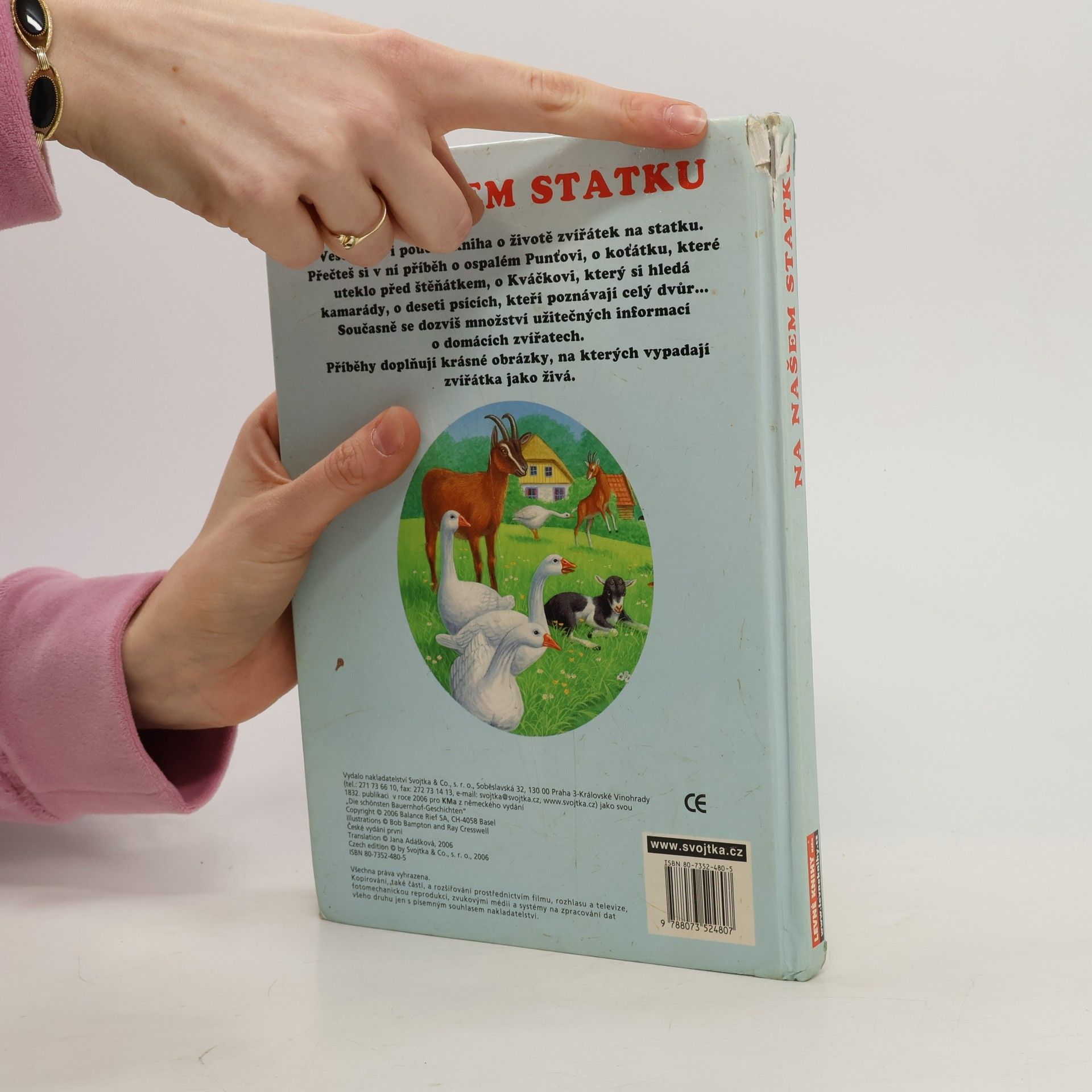 Veselá, ale i poučná kniha o životě zvířátek na statku. Přečteš si v ní příběh o ospalém Punťovi, o koťátku, které uteklo před štěňátkem, o Kváčkovi, který si hledá kamarády, o deseti psících, kteří poznávají celý dvůr... Současně se dozvíš množství užitečných informací o domácích zvířatech. Příběhy doplňují krásné obrázky, na kterých vypadají zvířátka jako živá.