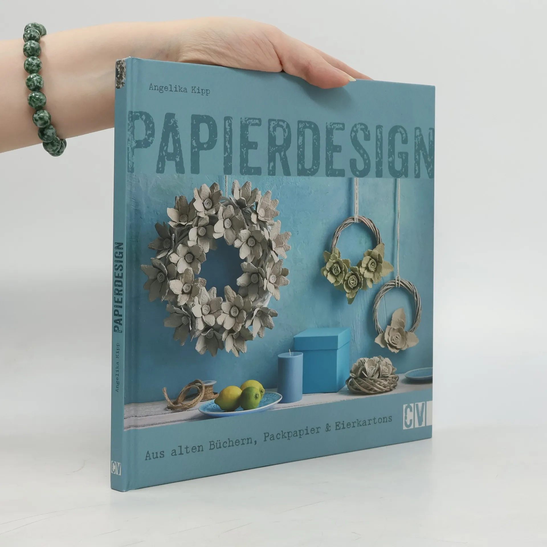 Das besondere Design Wandschmuck, Kugeln, Kränze, Hüllen für Vasen und Blumentöpfe, Blüten. Diese Deko-Objekte entstehen aus Seiten aus alten Büchern sowie mit Elementen aus Eierkarton und Packpapier. Sie überzeugen durch ihre ganz spezielle reduzierte Optik. Als Grundformen werden ganz einfach Pappe, Pappröhren oder Styroporformen verwendet. So sind diese Dekorationen schnell, leicht und preiswert herzustellen - eine rundum tolle Sache.