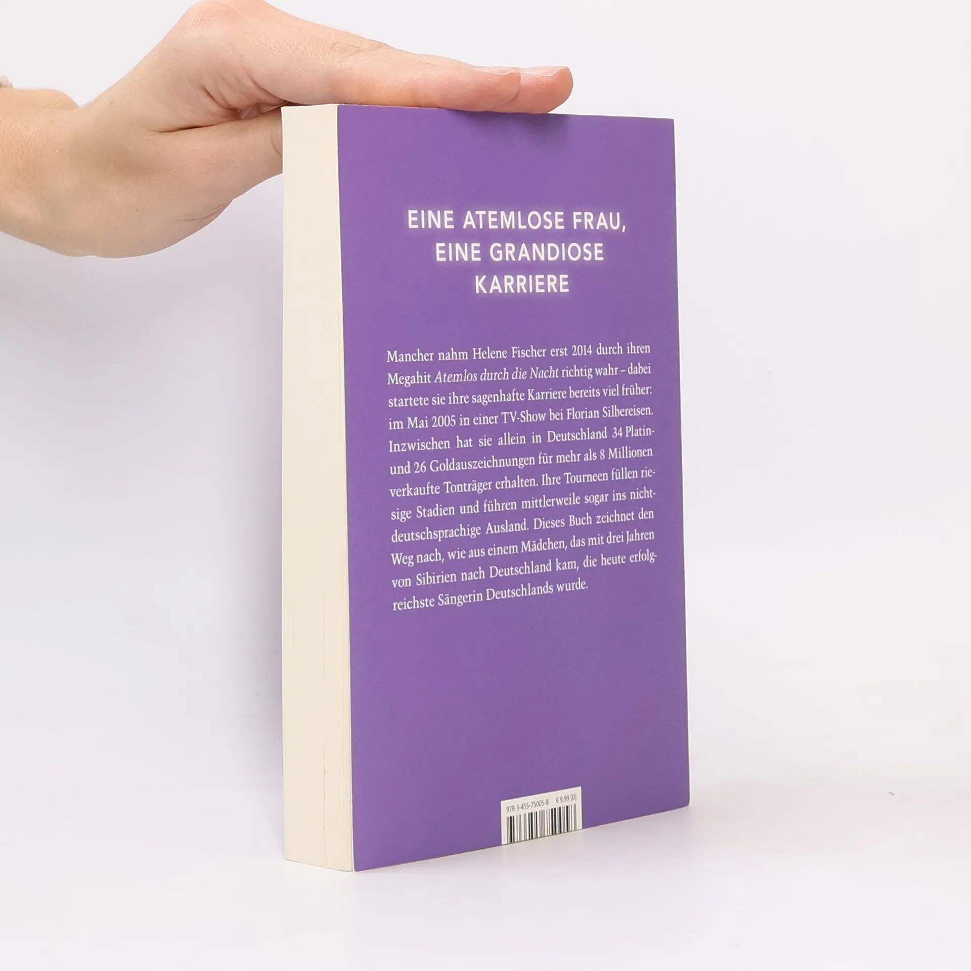 Eine atemlose Frau, eine grandiose Karriere - das Buch für alle Fans! Mancher nahm Helene Fischer erst 2014 durch ihren Megahit „Atemlos durch die Nacht“ richtig wahr - dabei startete sie ihre sagenhafte Karriere bereits viel früher: im Mai 2005 in einer TV-Show bei Florian Silbereisen. Inzwischen hat sie allein in Deutschland 34 Platin- und 26 Goldauszeichnungen für mehr als 8 Millionen verkaufte Tonträger erhalten. Ihre Tourneen füllen riesige Stadien und führen mittlerweile sogar ins nicht-deutschsprachige Ausland. Dieses Buch zeichnet den Weg nach, wie aus einem Mädchen, das mit drei Jahren von Sibirien nach Deutschland kam, die heute erfolgreichste Sängerin Deutschlands wurde.