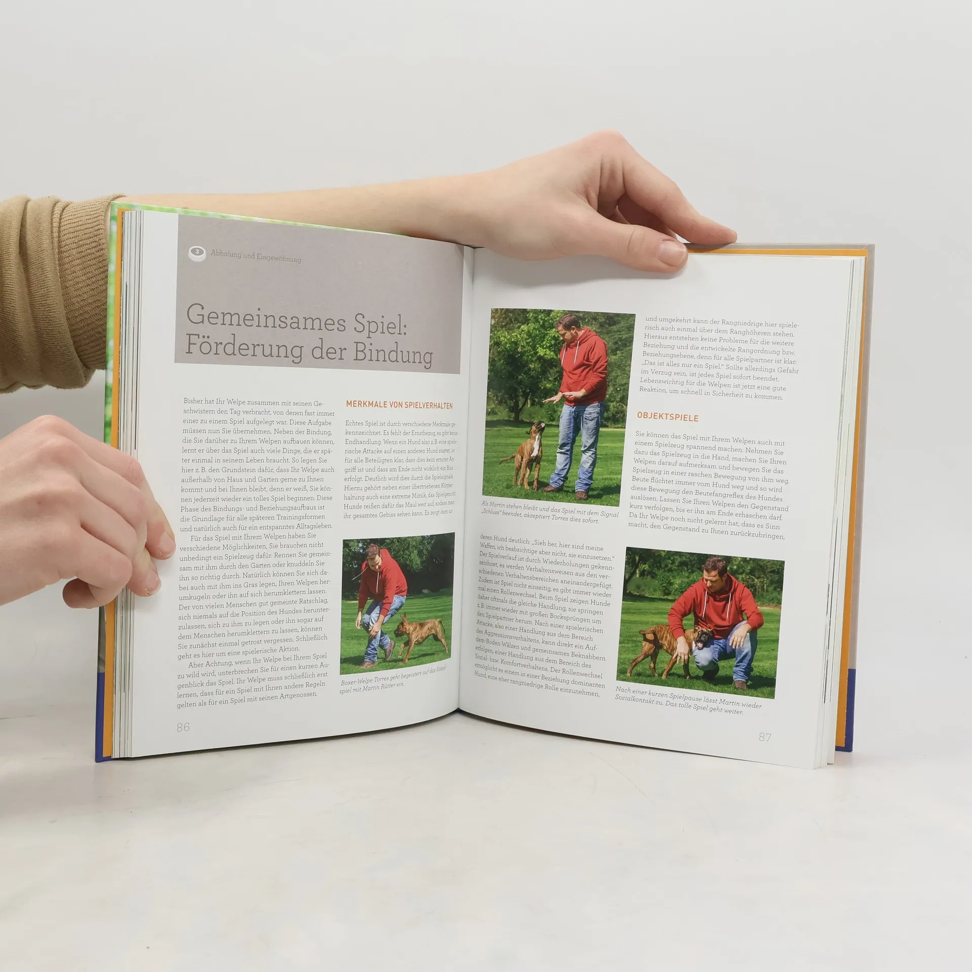 Klein, tapsig, mit großen Augen und dicken Pfoten purzeln Welpen in ihre neuen Familien und stellen deren Alltag kurzerhand auf den Kopf. Tischbeine werden angenagt, Besuch angesprungen, und fühlt sich der kleine Kerl verlassen, jault er herzerweichend. Jetzt ist guter Rat gefragt! Hundeprofi Martin Rütter zeigt, was Welpen in den ersten Wochen lernen sollten – von der Stubenreinheit über das Alleinbleiben, Entdeckungstouren in die Natur und die Stadt bis hin zu den Grundsignalen wie Fuß, Hier, Sitz und Platz. Durch positives Lernen, klare Regeln und viel Geduld wird so aus einem kleinen Hund ein angenehmer Begleiter.