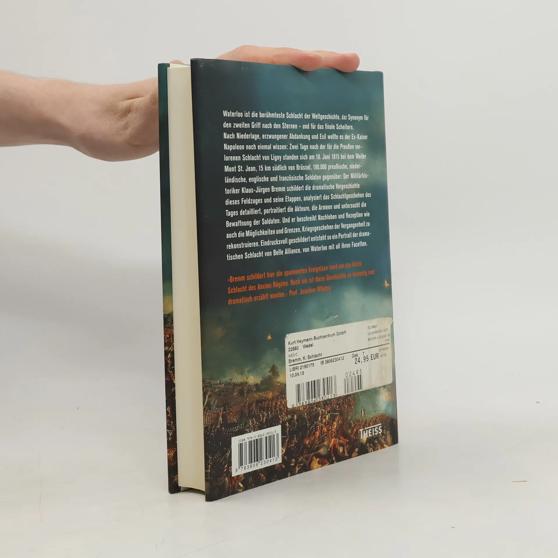 Waterloo 1815 blieb bis heute als die wohl berühmteste Schlacht der Weltgeschichte in Erinnerung. Napoleons letztes Gefecht ist DAS Synonym für den zweiten Griff nach den Sternen ebenso wie für das finale Scheitern. Trotz seiner erzwungenen Abdankung im Vorjahr und dem Exil in Elba wollte es der Ex-Kaiser noch einmal wissen: Zwei Tage nach den Schlachten von Ligny und Quatre Bras standen sich am 18. Juni 1815, einem Sonntag, etwa 15 Kilometer südlich von Brüssel, nahe der kleinen Ortschaft Mont St. Jean, erneut 180.000 deutsche, niederländische, englische und französische Soldaten gegenüber. Der Militärhistoriker Klaus-Jürgen Bremm schildert die dramatische Vorgeschichte dieses Feldzuges und seine Etappen. Er analysiert das Schlachtgeschehen des Tages detailliert, porträtiert die Akteure, die Armeen und untersucht die Bewaffnung der Soldaten. Und er beschreibt Nachleben und Rezeption wie auch die Möglichkeiten und Grenzen, Kriegsgeschehnisse der Vergangenheit zu rekonstruieren. Eindrucksvoll geschildert entsteht so ein Porträt der Schlacht mit all ihren Facetten.