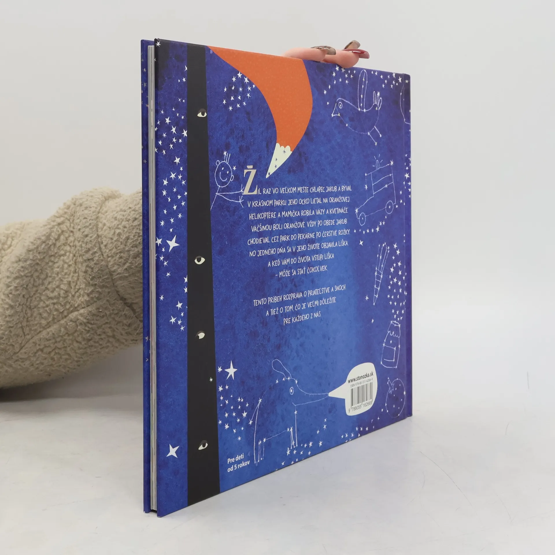 Žil raz vo veľkom meste chlapec, ktorý sa volal Jakub. On, ocko a mamička bývali v krásnom parku. Presnejšie, mali dom v strome, čo pamätal dávne časy. Ocko prevážal ľudí a veci na oranžovej helikoptére, zatiaľ čo mamička doma robila hlinené vázy a kvetináče. Väčšinou boli oranžové. Vždy po obede Jakub chodieval cez park do pekárne po čerstvé rožky. Jedného dňa sa v jeho živote objavila líška. A keď vám do života vstúpi líška – môže sa stať čokoľvek. Tento príbeh rozpráva o priateľstve a snoch. A tiež o tom, čo je veľmi dôležité pre každého z nás. Je to príbeh o šťastí.
