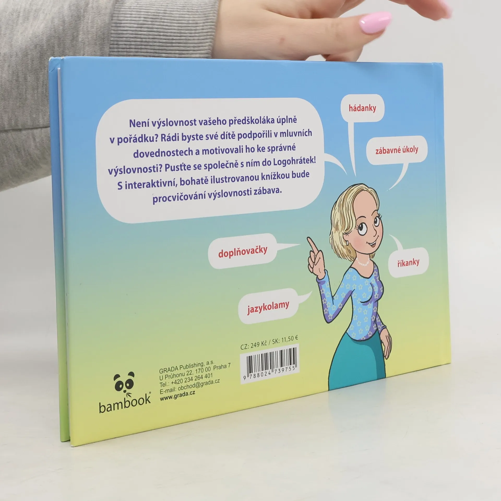 „Opičinky opičí svaly nejlíp procvičí.“ Neohebný jazýček zase nejlépe rozpohybují Logohrátky. Není výslovnost vašeho předškoláka úplně v pořádku? Rádi byste své dítě podpořili v mluvních dovednostech a motivovali ho ke správné výslovnosti? Skvěle vám v tom pomůže tato hravá ilustrovaná knížka. Díky říkankám, hádankám a zábavným úkolům se svým předškolákem procvičíte výslovnost těžších hlásek a hláskových skupin, a navíc si spolu užijete hodně zábavy.