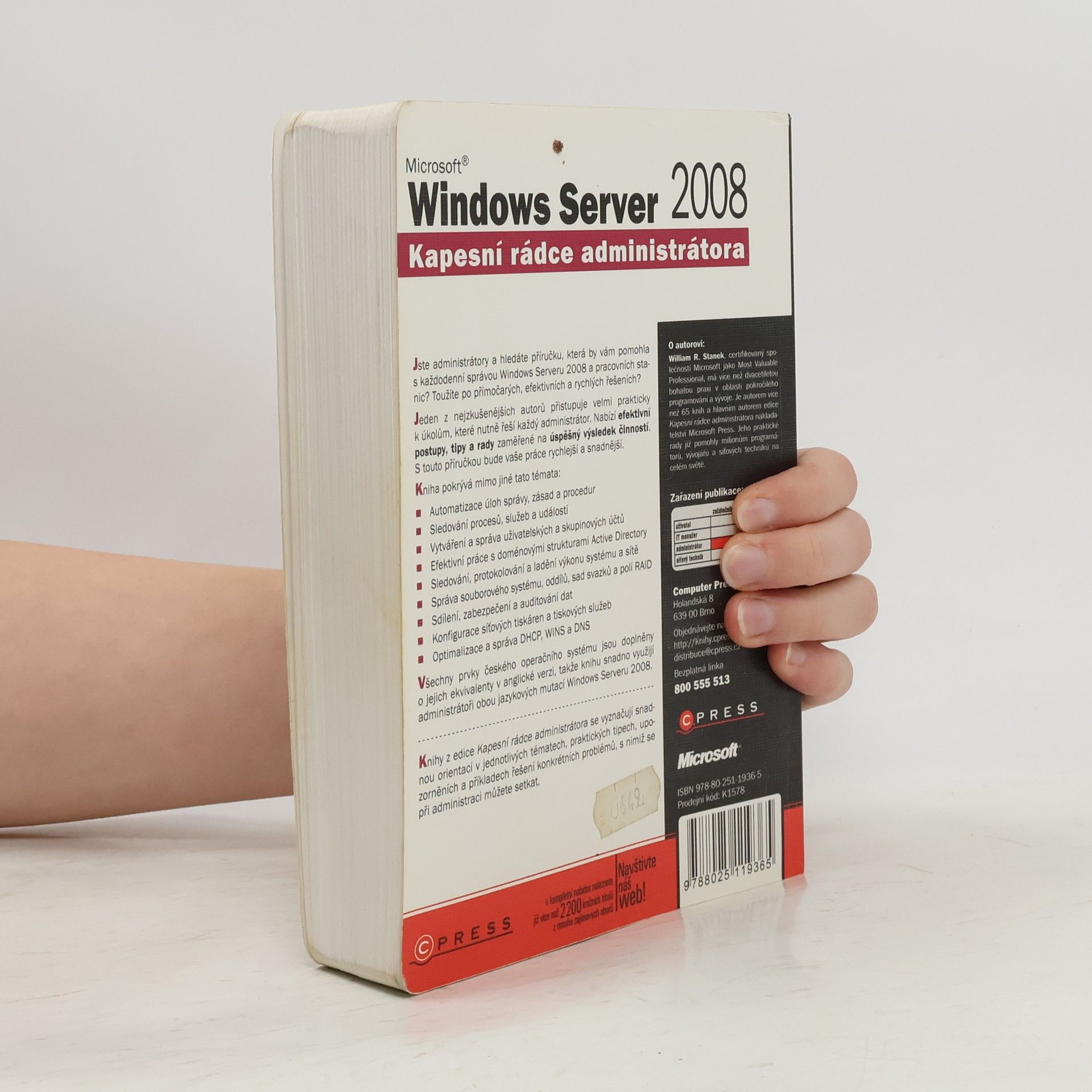 Jste administrátory a hledáte příručku, která by vám pomohla s každodenní správou Windows Serveru 2008 a pracovních stanic? Toužíte po přímočarých, efektivních a rychlých řešeních? Jeden z nejzkušenějších autorů přistupuje velmi prakticky k úkolům, které nutně řeší každý administrátor. Nabízí efektivní postupy, tipy a rady zaměřené na úspěšný výsledek činností. S touto příručkou bude vaše práce rychlejší a snadnější. Kniha pokrývá mimo jiné tato témata: - Automatizace úloh správy, zásad a procedur - Sledování procesů, služeb a událostí - Vytváření a správa uživatelských a skupinových účtů - Efektivní práce s doménovými strukturami Active Directory - Sledování, protokolování a ladění výkonu systému a sítě - Správa souborového systému, oddílů, sad svazků a polí RAID - Sdílení, zabezpečení a auditování dat - Konfigurace síťových tiskáren a tiskových služeb - Optimalizace a správa DHCP, WINS a DNS Všechny prvky českého operačního systému jsou doplněny o jejich ekvivalenty v anglické verzi, takže knihu snadno využijí administrátoři obou jazykových mutací Windows Serveru 2008. Knihy z edice Kapesní rádce administrátora se vyznačují snadnou orientací v jednotlivých tématech, praktických tipech, upozorněních a příkladech řešení konkrétních problémů, s nimiž se při administraci můžete setkat.