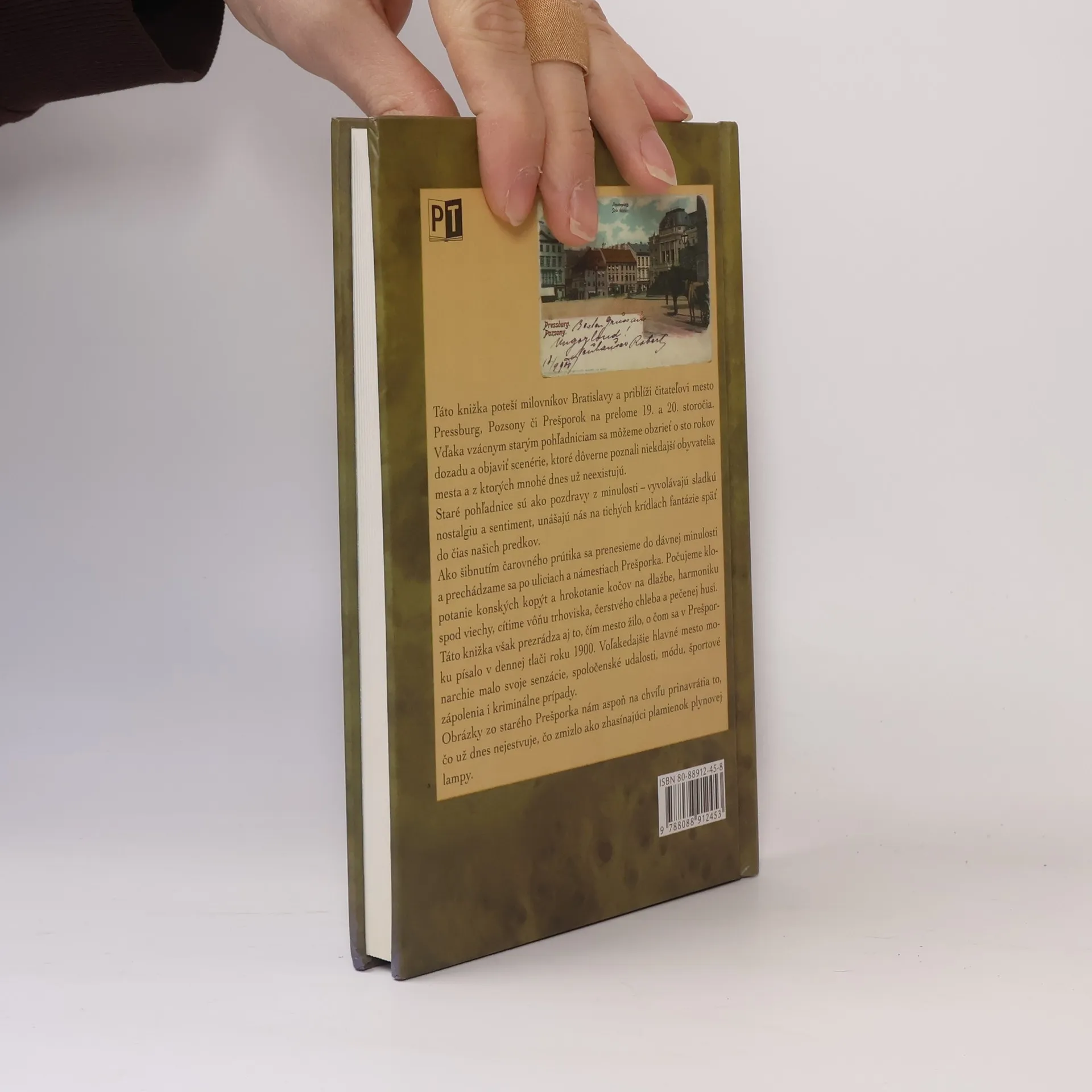 Táto knižka poteší milovníkov Bratislavy a priblíži čitateľovi mesto Pressburg, Pozsony či Prešporok na prelome 19. a 20. storočia. Vďaka vzácnym starým pohľadniciam sa môžeme obzrieť o sto rokov späť a objaviť scenérie, ktoré dôverne poznali niekdajší obyvatelia mesta, a z ktorých mnohé dnes už neexistujú. Staré pohľadnice sú ako pozdravy z minulosti vyvolávajúce sladkú nostalgiu a sentiment, unášajú nás na tichých krídlach fantázie späť do čias našich predkov. Ako šibnutím čarovného prútika sa prenesieme do dávnej minulosti a prechádzame sa po uliciach a námestiach Prešporka. Počujeme klopotanie konských kopýt a hrokotanie kočov na dlažbe, harmoniku spod viechy, cítime vôňu trhoviska, čerstvého chleba a pečenej husi. Táto knižka však prezrádza aj to, čím mesto žilo, o čom sa v Prešporku písalo v dennej tlači roku 1900. Voľakedajšie hlavné mesto monarchie malo svoje senzácie, spoločenské udalosti, módu, športové zápolenia i kriminálne prípady. Obrázky zo starého Prešporka nám aspoň na chvíľu prinavrátia to, čo už dnes nejestvuje, čo zmizlo ako zhasínajúci plamienok plynovej lampy.