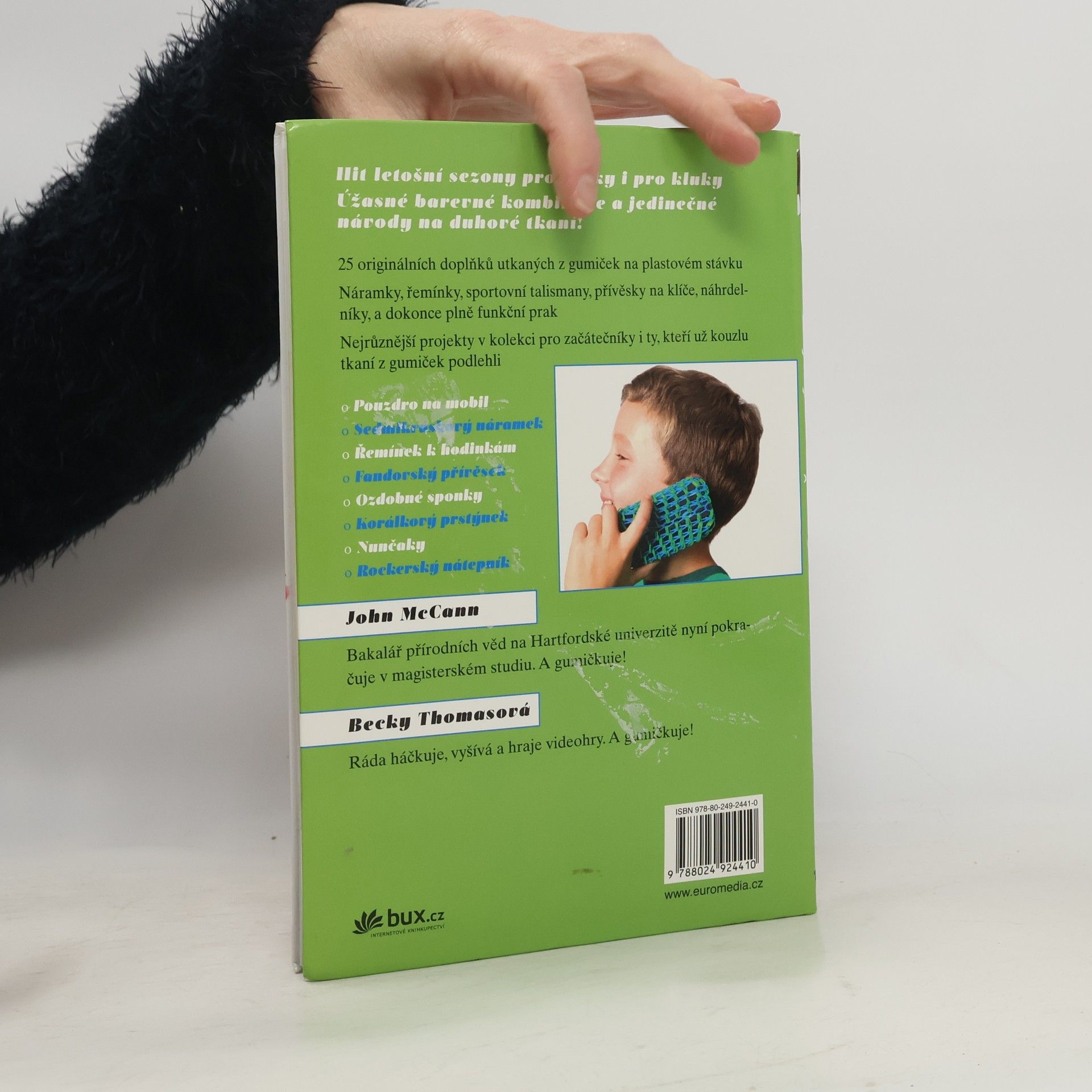 25 senzačních návrhů na duhové tkaní z gumiček Hit letošní sezony pro holky i pro kluky! Budete potřebovat jen stávek, kupu barevných gumiček, háček, trochu zručnosti a hodně fantazie. Pak se můžete pustit do zábavného duhového tkaní! Vyberte si z 25 nápaditých projektů: jsou mezi nimi náramky, sportovní talismany, přívěsky na klíče, náhrdelníky, pouzdro na mobil, rockerský nátepník, a dokonce i plně funkční prak. Podlehněte kouzlu tkaní z gumiček a přidejte nové výrazné doplňky ke svému outfitu!
