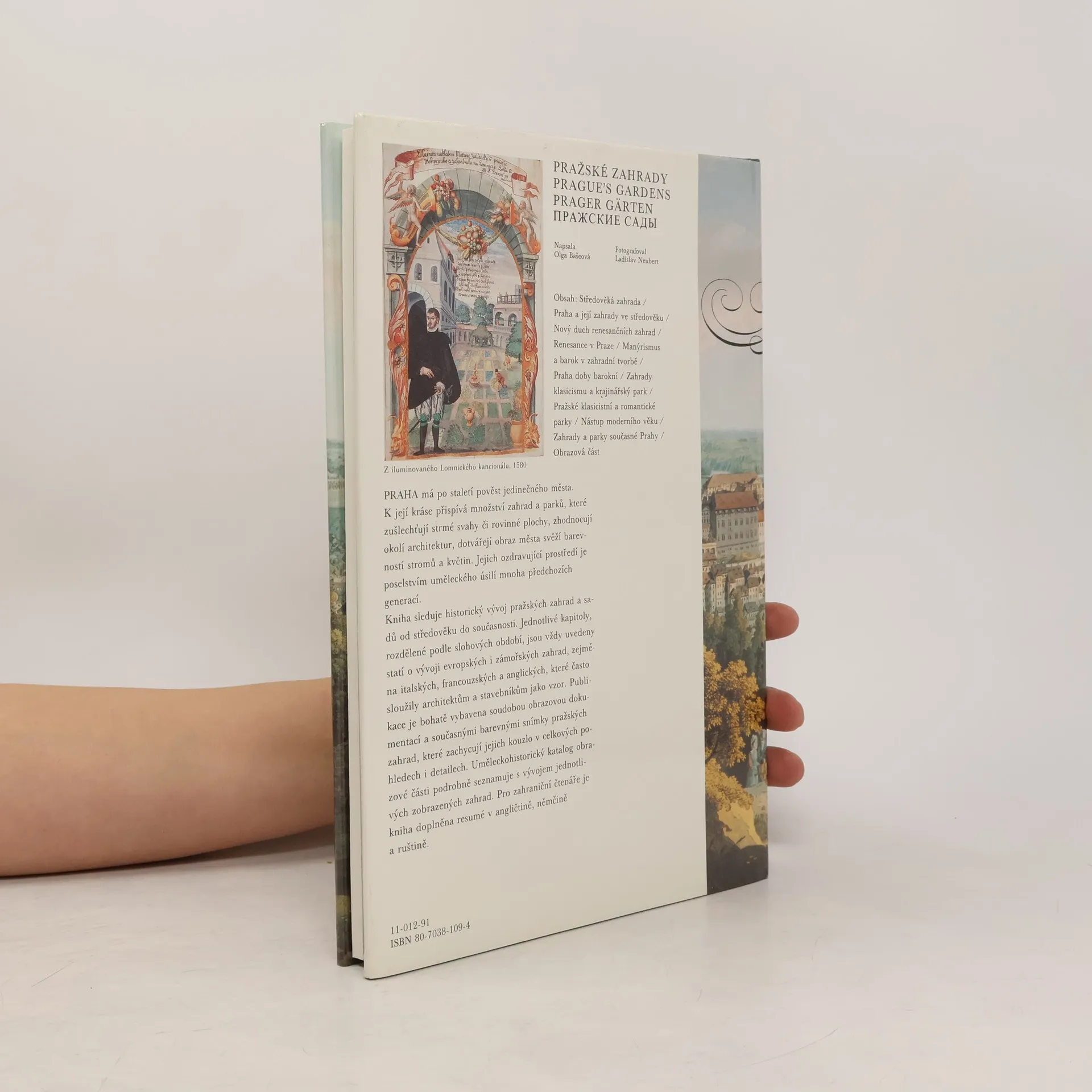 Kniha přibližuje historii pražských zahrad, od rané historie osídlení až do současnosti. Z jednotlivých historických období uvádí a popisuje ty nejkrásnější, s autory uměleckých návrhů, majitelů, umístění a současného stavu.