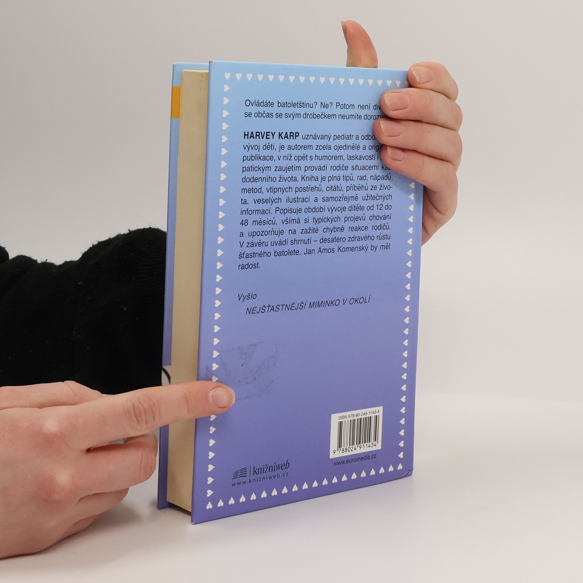 Harvey Karp, uznávaný pediatr a odborník na vývoj dětí, je autorem zcela ojedinělé a originální publikace, v níž opět s humorem, laskavostí i sympatickým zaujetím provádí rodiče situacemi každodenního života. Kniha je plná tipů, rad, nápadů, metod, vtipných postřehů, citátů, příběhů ze života, veselých ilustrací a samozřejmě užitečných informací. Popisuje období vývoje dítěte od 12 do 48 měsíců, všímá si typických projevů chování a upozorňuje na zažité chybné reakce rodičů. V závěru uvádí shrnutí - desatero zdravého růstu šťastného batolete. Jan Amos Komenský by měl radost.