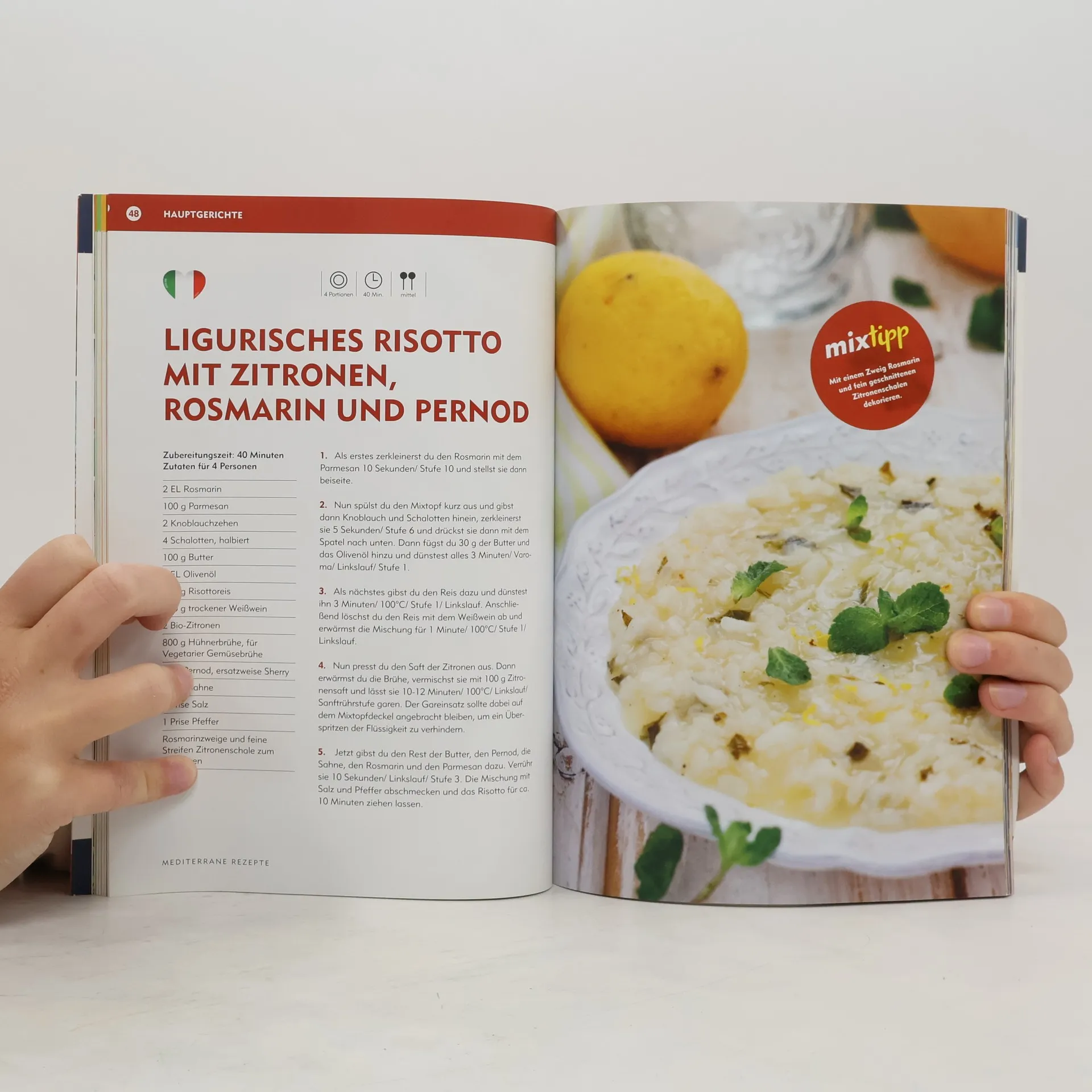 Kastilische Cremesuppe, Vitello Tonnato, Gyros Kefalonia oder Toskanischer Kaninchentopf – das sind nur einige der mediterranen Köstlichkeiten, die Maria del Carmen Martin-Gonzales, langjährige Mitarbeiterin der spanischen Thermomix-Zeitschrift „Cocina tu misma con Thermomix“, in diesem Buch zusammengestellt hat. Mit dieser speziell auf den Thermomix TM 5 und TM 31 zugeschnittenen Rezeptsammlung kannst du schonend und entspannt vielfältige Gerichte aus der mediterranen Küche zubereiten. Dabei findest du hier sowohl abwechslungsreiche Vorspeisen und Suppen als auch köstliche Hauptspeisen und raffinierte Desserts. Entdecke deine mediterrane Seite und genieße neue kulinarische Geschmacksmomente mit dem Thermomix und unseren MixTipps!
