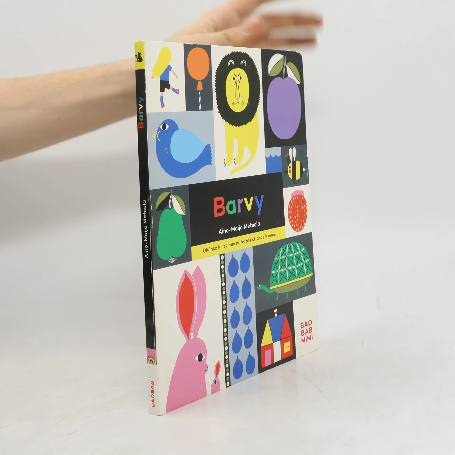 Leporelo, které obsahuje „Okénko k otvírání na každé stránce k mání!“ Barvy pro nejmenší jako hra a objevování. Poznávání barev, pojmenování věcí a hledání rozdílů nabízí kniha finské výtvarnice Aino-Maiji Metsoly. Zábavu při čtení mohou zaručit vyklápěcí okna s hádankami, výrazné ilustrace i pestrá koláž témat.