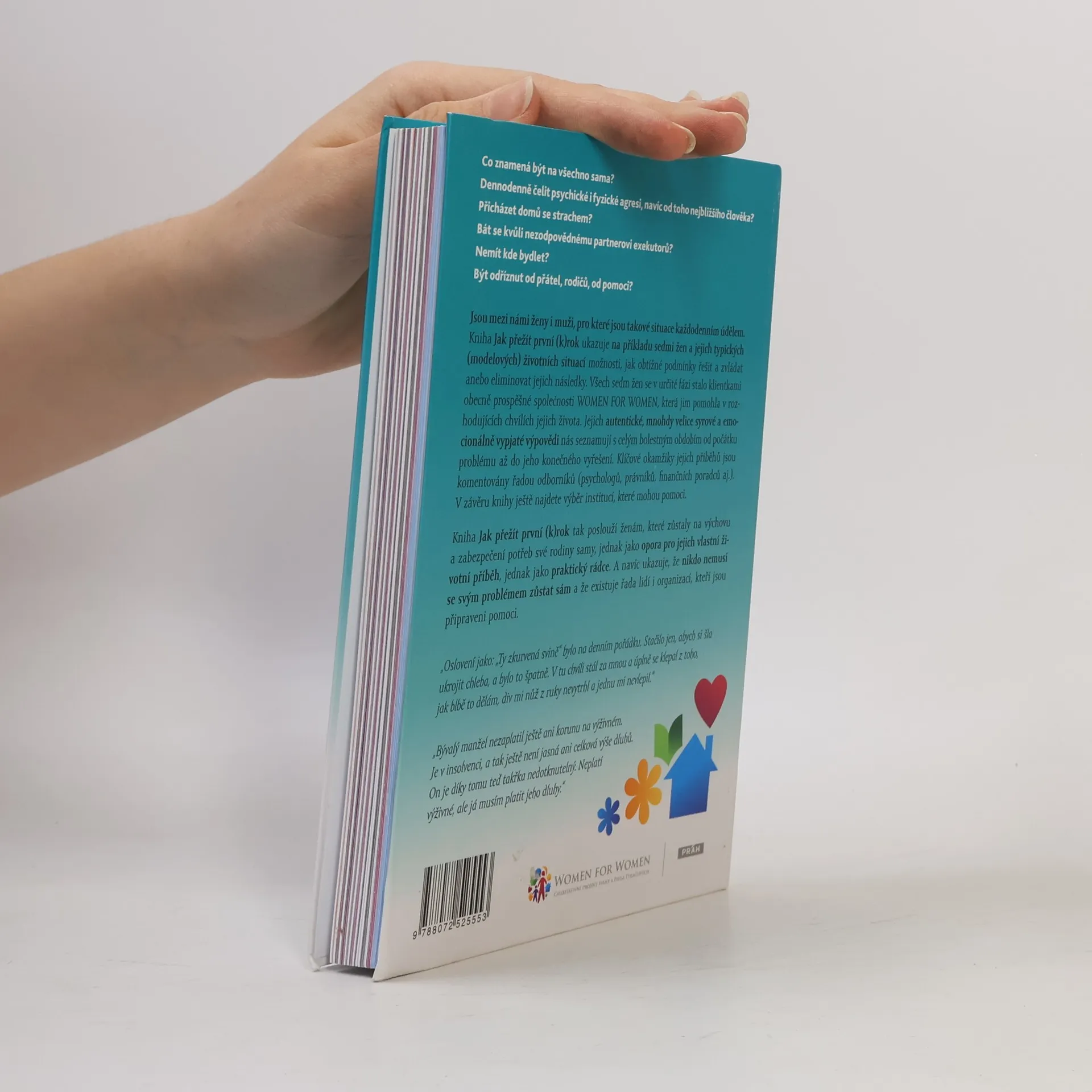 Co znamená být na všechno sama? Dennodenně čelit psychické a fyzické agresi, a to od nejbližšího člověka? Bát se nezodpovědného partnera a exekutorů? Být odříznut od přátel a rodiny? Pro některé ženy (i muže) jsou tyto situace každodenním údělem, kdy se doslova perou o holou existenci v psychické a ekonomické pasti. Kniha ukazuje příběhy sedmi žen, které se staly klientkami organizace WOMEN FOR WOMEN a které prošly bolestným obdobím od počátku problémů až po jejich vyřešení. Sledujeme jejich pád do pasti, psychické a fyzické násilí, a rostoucí snahu osvobodit se. Klíčové okamžiky jejich příběhů jsou doplněny komentáři odborníků, kteří na závěr každého příběhu poskytují souhrnné rady. Tato kniha je určena ženám, které se kvůli nevydařenému manželství propadají do psychických a ekonomických potíží. Mohou porovnat svůj příběh s ostatními, získat nadhled a lépe analyzovat své možnosti. Odborné komentáře jim pomohou lépe se orientovat ve vlastní situaci a poskytnou praktické rady, jak čelit obtížím. Kniha přináší naději, že nikdo nemusí čelit svým problémům sám a že existuje pomoc.