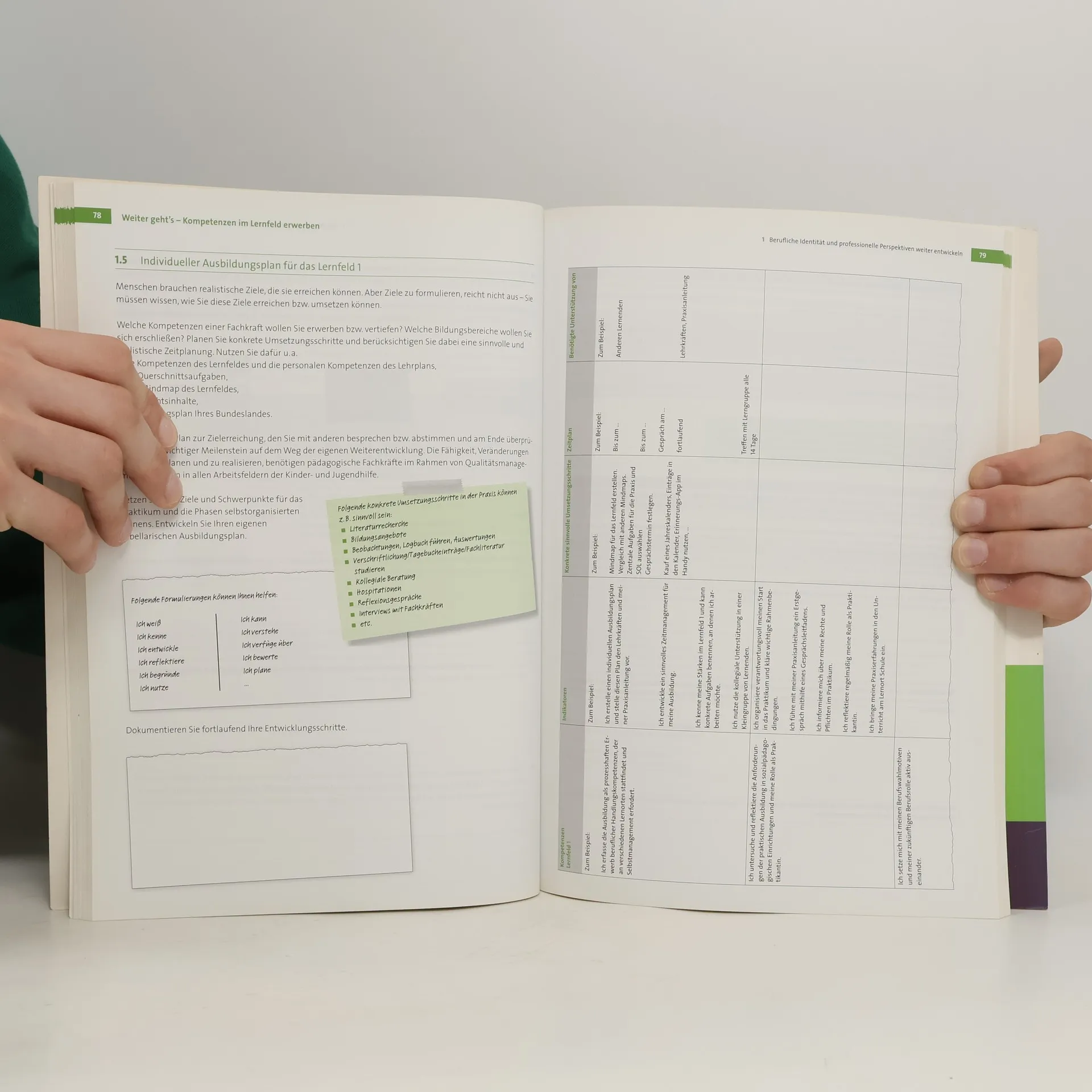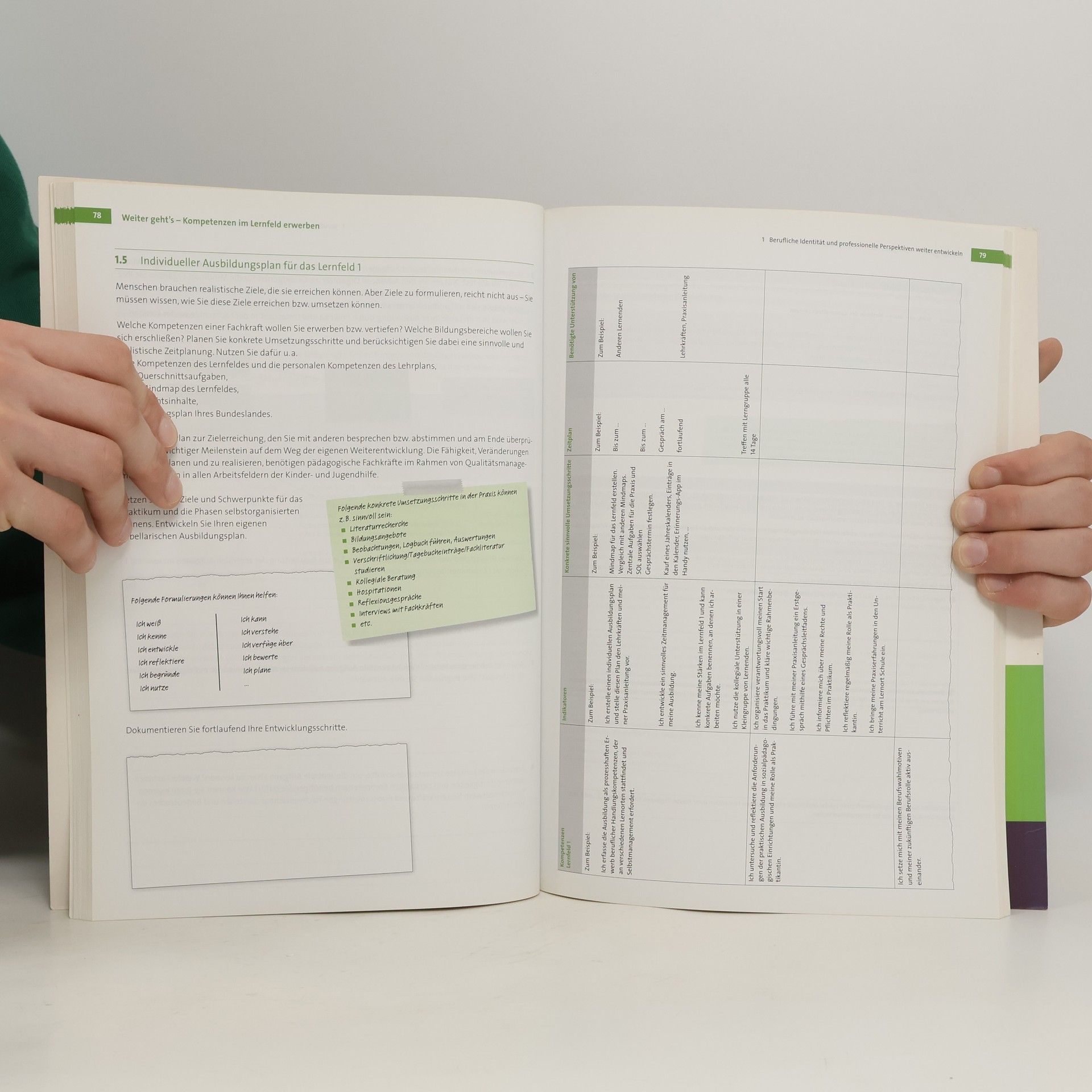 Das Ausbildungsbegleitheft für angehende Erzieher/-innen informiert über alle Phasen der Ausbildungszeit bis zum Berufsanfang. Es veranschaulicht den Lernweg und fördert so die Selbstreflexion der Lernschritte in Schule und Praxis. Das Heft hilft, den individuellen Kompetenzerwerb durch verschiedene Methoden der Dokumentation sichtbar zu machen.