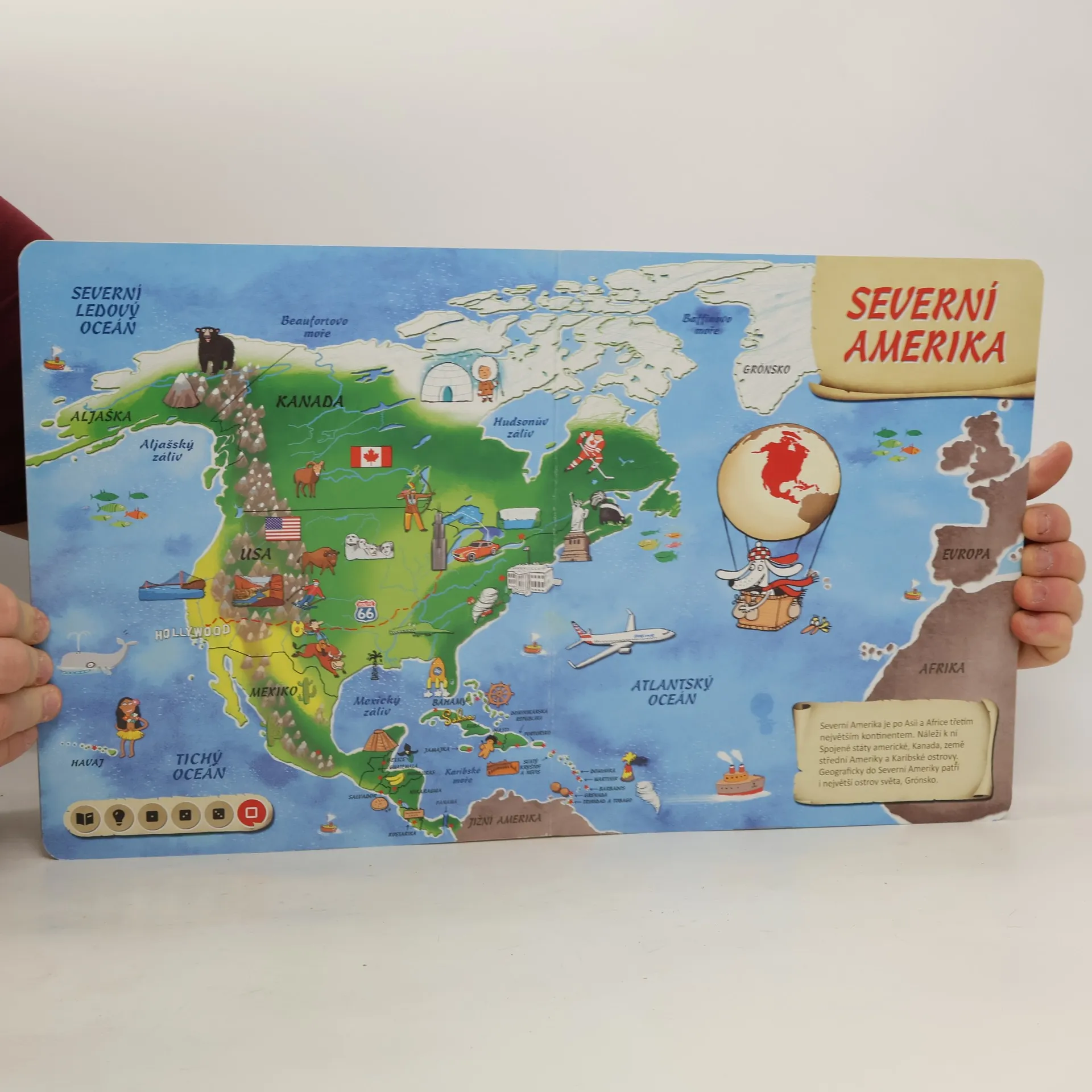 Tato kniha obsahuje osm různých map. Na jednotlivých stranách se seznámíte se všemi kontinenty, poznáte země na naší planetě a zjistíte, kde tyto země leží. Nechybí zde ani oceány, moře, velké řeky a pohoří, které jsou nedílnou součástí naší planety. Obrázky na mapách vám ukáží, jaká zvířata, stavby či jiné zajímavosti můžete v jednotlivých zemích najít. Kniha je namluvena známým českým hercem Otakarem Brouskem ml. Kniha obsahuje přes 1800 zvuků a textů.