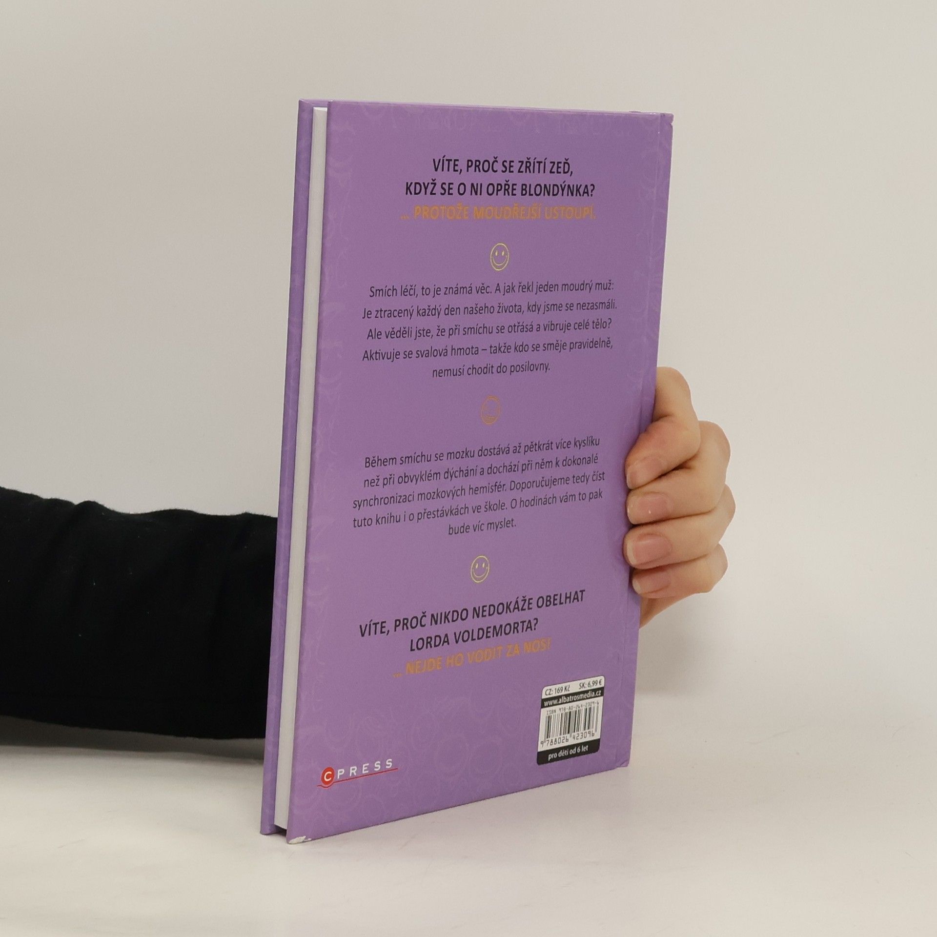 VÍTE, PROČ SE ZŘÍTÍ ZEĎ, KDYŽ SE O NI OPŘE BLONDÝNKA? … PROTOŽE MOUDŘEJŠÍ USTOUPÍ. Smích léčí, to je známá věc. A jak řekl jeden moudrý muž: Je ztracený každý den našeho života, kdy jsme se nezasmáli. Ale věděli jste, že při smíchu se otřásá a vibruje celé tělo? Aktivuje se svalová hmota – takže kdo se směje pravidelně, nemusí chodit do posilovny. Během smíchu se mozku dostává až pětkrát více kyslíku než při obvyklém dýchání a dochází při něm k dokonalé synchronizaci mozkových hemisfér. Doporučujeme tedy číst tuto knihu i o přestávkách ve škole. O hodinách vám to pak bude víc myslet.
