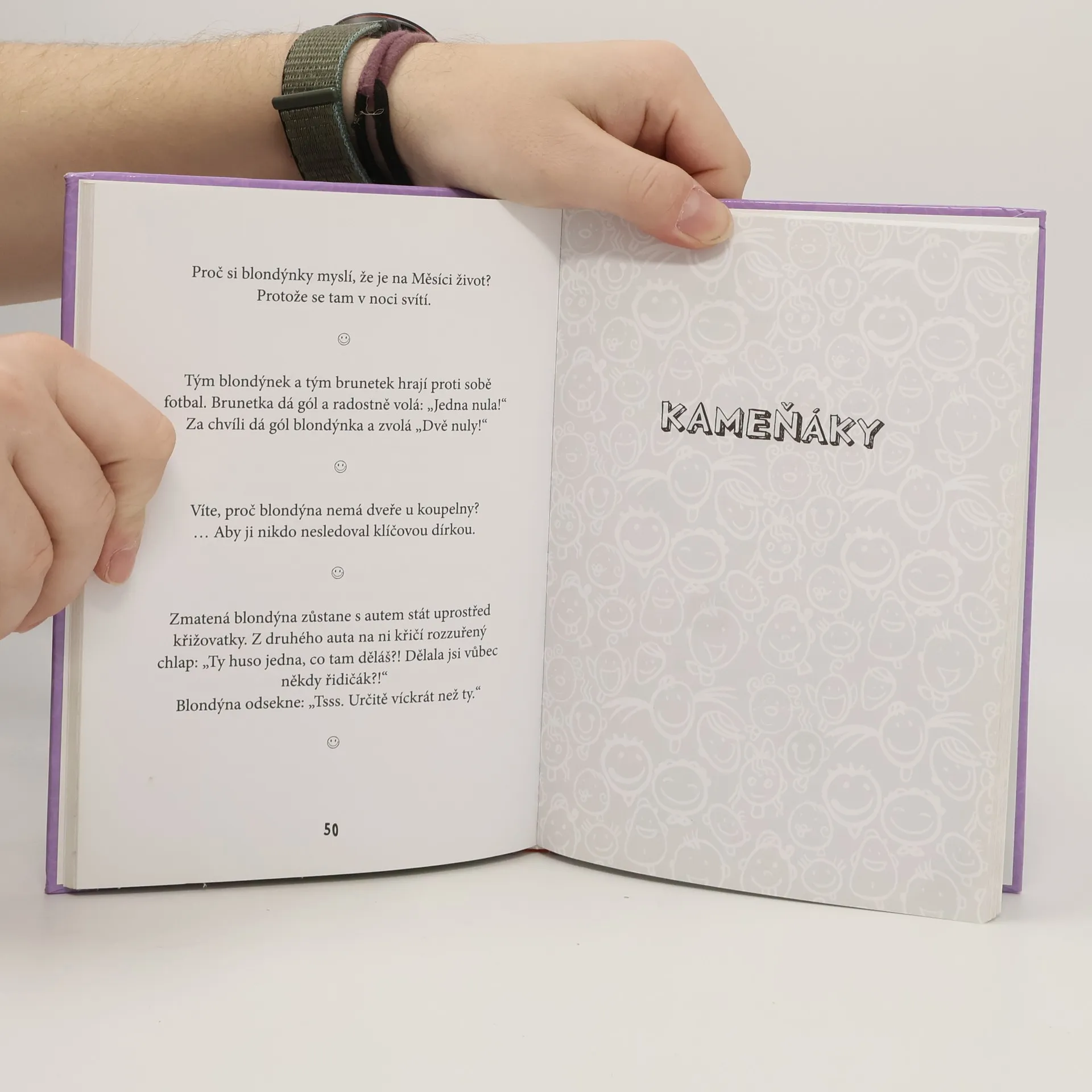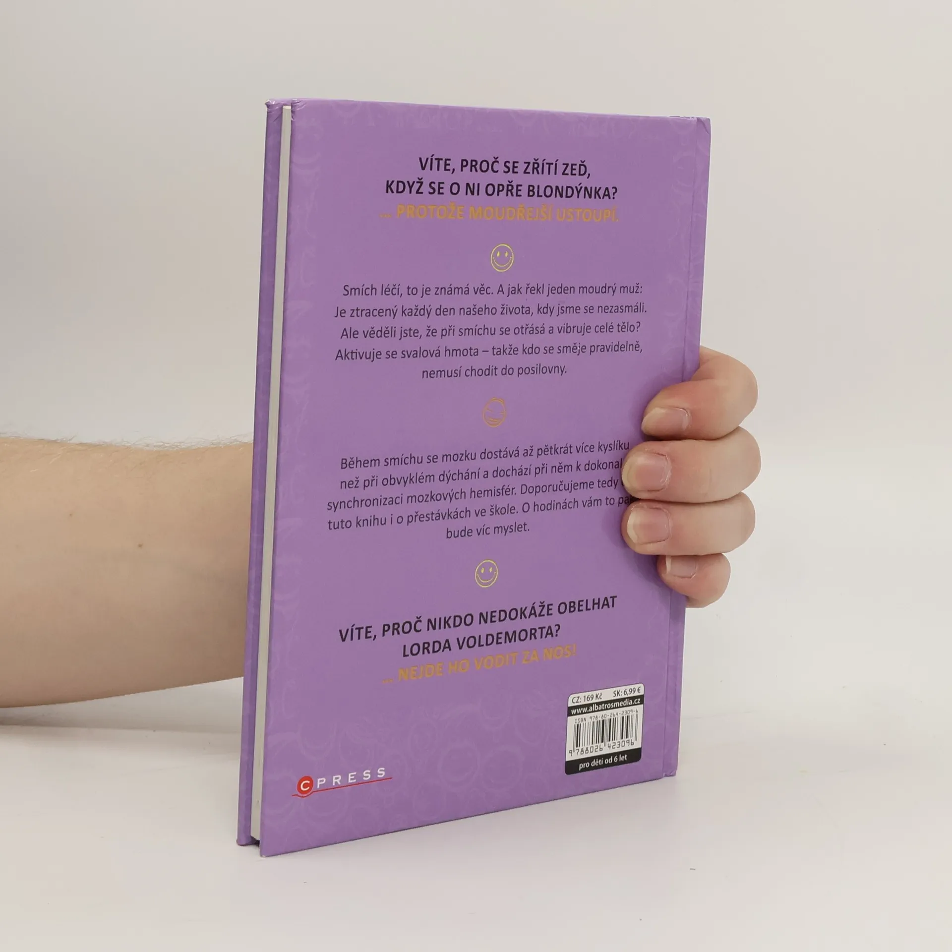VÍTE, PROČ SE ZŘÍTÍ ZEĎ, KDYŽ SE O NI OPŘE BLONDÝNKA? … PROTOŽE MOUDŘEJŠÍ USTOUPÍ. Smích léčí, to je známá věc. A jak řekl jeden moudrý muž: Je ztracený každý den našeho života, kdy jsme se nezasmáli. Ale věděli jste, že při smíchu se otřásá a vibruje celé tělo? Aktivuje se svalová hmota – takže kdo se směje pravidelně, nemusí chodit do posilovny. Během smíchu se mozku dostává až pětkrát více kyslíku než při obvyklém dýchání a dochází při něm k dokonalé synchronizaci mozkových hemisfér. Doporučujeme tedy číst tuto knihu i o přestávkách ve škole. O hodinách vám to pak bude víc myslet.
