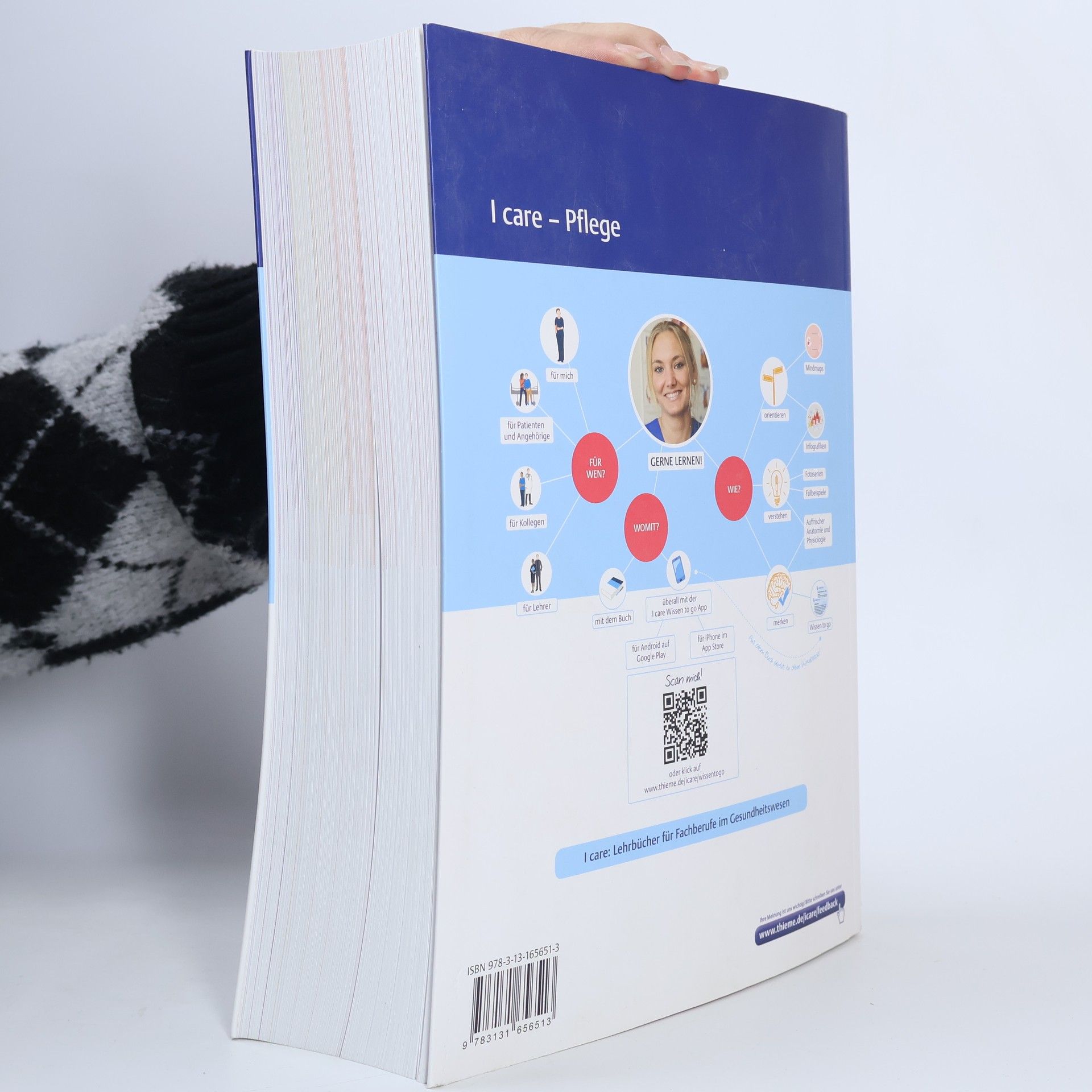 Du machst eine Ausbildung zum/r Gesundheits- und Krankenpfleger/in? I care Pflege ist der ideale Begleiter für Dich. Es bietet Dir das nötige Wissen, um eine kompetente Pflegekraft zu werden, und versetzt Dich in die Perspektive Deiner Patienten. Mit hilfreichen Tipps meisterst Du den oft stressigen Alltag auf Station. Das Wissen to go fasst die wichtigsten Informationen zum Wiederholen und Nachschlagen zusammen – sowohl im Buch als auch in der App. Die Themen umfassen Ausbildung und Beruf in der Pflege, rechtliche Rahmenbedingungen, Pflegebasismassnahmen, Notfallsituationen, spezielle Pflegesituationen und therapeutische Aufgaben. Die Inhalte wurden in Zusammenarbeit mit Pflegeexperten, -pädagogen und Medizinern entwickelt, um Qualität und Relevanz für Ausbildung und Prüfungen sicherzustellen. I care ist Teil einer neuen Produktfamilie, die Dir alles Wissen für Deine Ausbildung bietet. In drei aufeinander abgestimmten Bänden – Pflege, Anatomie, Physiologie und Krankheitslehre – kannst Du jedes Buch einzeln nutzen oder alle drei kombinieren, um optimal auf den Pflegealltag vorbereitet zu sein. Die I care Wissen to go App bietet Dir kostenlos und jederzeit Zugriff auf das Wichtigste aus allen drei Bänden. I care ist auch für andere Fachberufe im Gesundheitswesen geeignet.