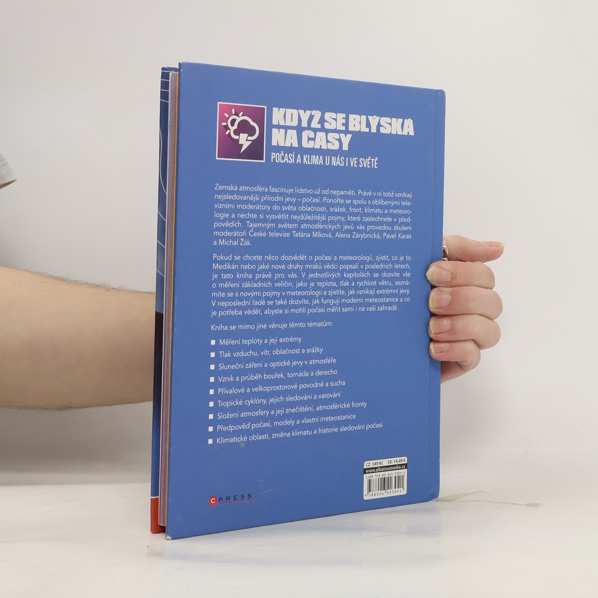 Průvodce světem počasí a klimatických změn od moderátorů České televize Zemská atmosféra fascinuje lidstvo už od nepaměti. Právě v ní totiž vznikají nejsledovanější přírodní jevy – počasí. Ponořte se spolu s oblíbenými televizními moderátory do světa oblačnosti, srážek, front, klimatu a meteorologie a nechte si vysvětlit nejdůležitější pojmy, které zaslechnete v předpovědích. Tajemným světem atmosférických jevů vás provedou zkušení moderátoři České televize Taťána Míková, Alena Zárybnická, Pavel Karas a Michal Žák.
