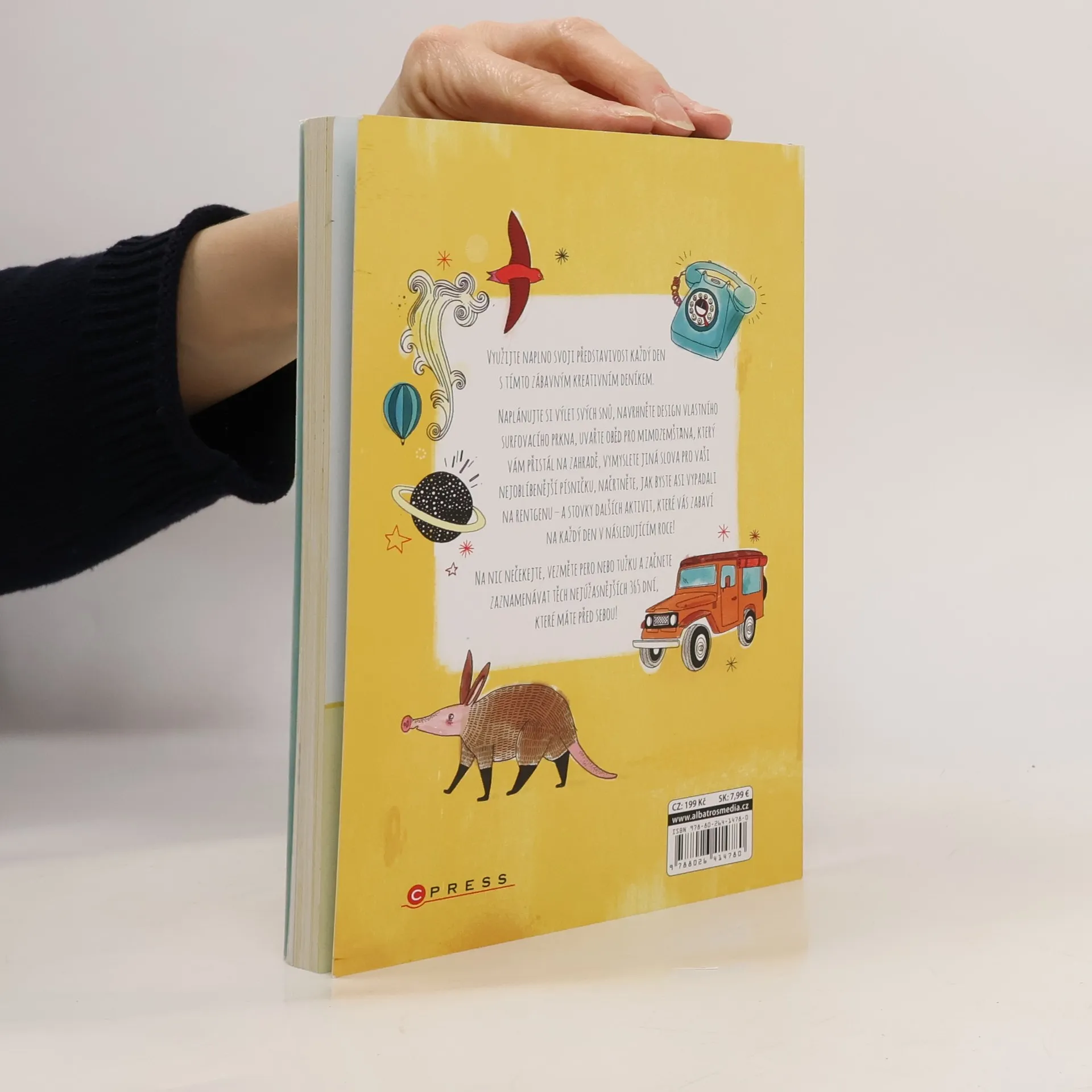 "Skvělý deník s kreativními nápady na každý den." Využijte naplno svoji představivost každý den s tímto zábavným kreativním deníkem. Naplánujte si výlet svých snů, navrhněte design vlastního surfovacího prkna, uvařte oběd pro mimozemšťana, vymyslete vlastní slova k vaší oblíbené písničce – a stovky dalších aktivit, které vás zabaví na každý den v následujícím roce! Na nic nečekejte, vezměte pero nebo tužku a začnete zaznamenávat těch nejúžasnějších 365 dní, které máte před sebou!