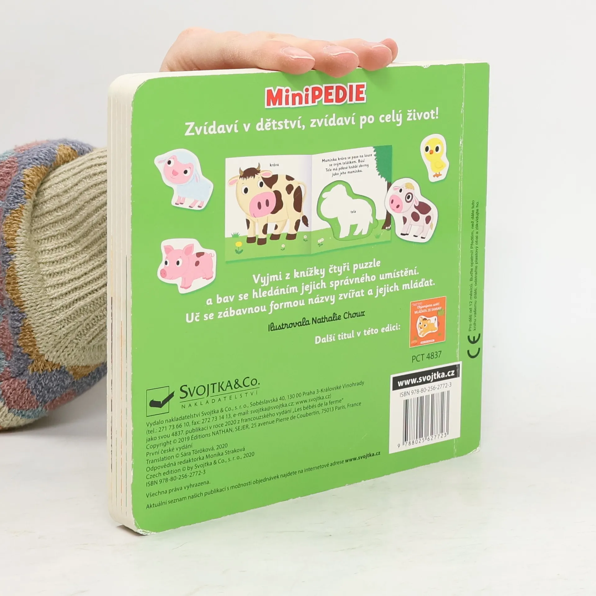 Sele se stočeným ocáskem nebo skrvnité telátko po mamince… slož a zase rozlož! Uč se se zvířátky. Tato knížka obsahuje velké kusy puzzle a je zaměřená na mláďátka z farmy. Roztomilé ilustrace a krátké popisky jsou ideální jak na hraní, tak i objevování a dozvídání se nových informací o obyvatelích každé správné farmy. Velké a především pevné kusy puzzle jsou vhodné pro malé dětské ruce a zaručí, že přežijí nejedno poutavé hraní. Toto leporelo je vhodné pro nejmenší čtenáře, protože procvičí jak jemnou motoriku, tak napomůže s rozvojem schopností skládat a přiřazovat správné objekty dohromady. Knížka s prvky Montessori. České vydání publikace nakladatelství Nathan.