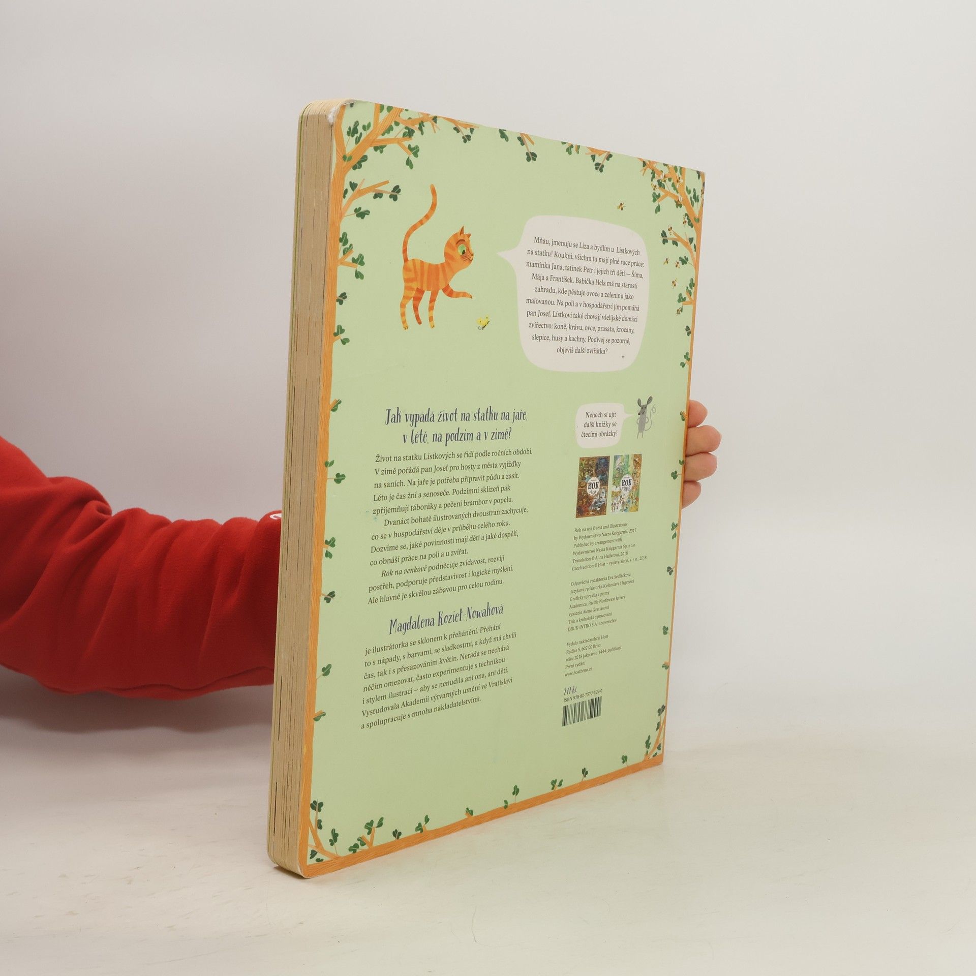 Život na statku Lístkových se řídí podle ročních období. V zimě pořádá pan Josef pro hosty z města vyjížďky na saních. Na jaře je potřeba připravit půdu a zasít. Léto je čas žní a senoseče. Podzimní sklizeň pak zpříjemňují táboráky a pečení brambor v popelu. Dvanáct bohatě ilustrovaných dvoustran zachycuje, co se v hospodářství děje v průběhu celého roku. Dozvíme se, jaké povinnosti mají děti a jaké dospělí, co obnáší práce na poli a u zvířat. Rok na venkově podněcuje zvídavost, rozvíjí postřeh, podporuje představivost i logické myšlení. Ale hlavně je skvělou zábavou pro celou rodinu. Pro děti od dvou let.