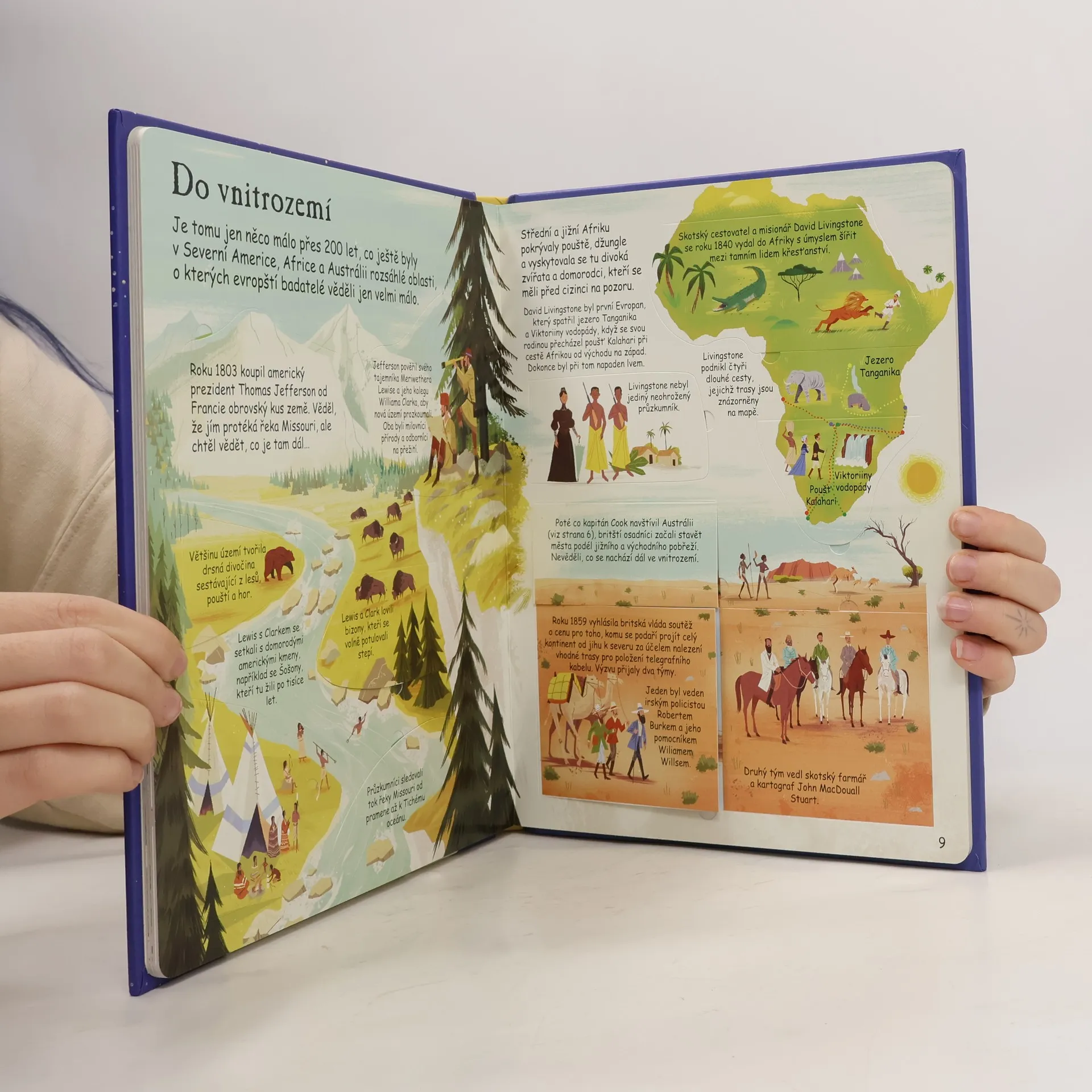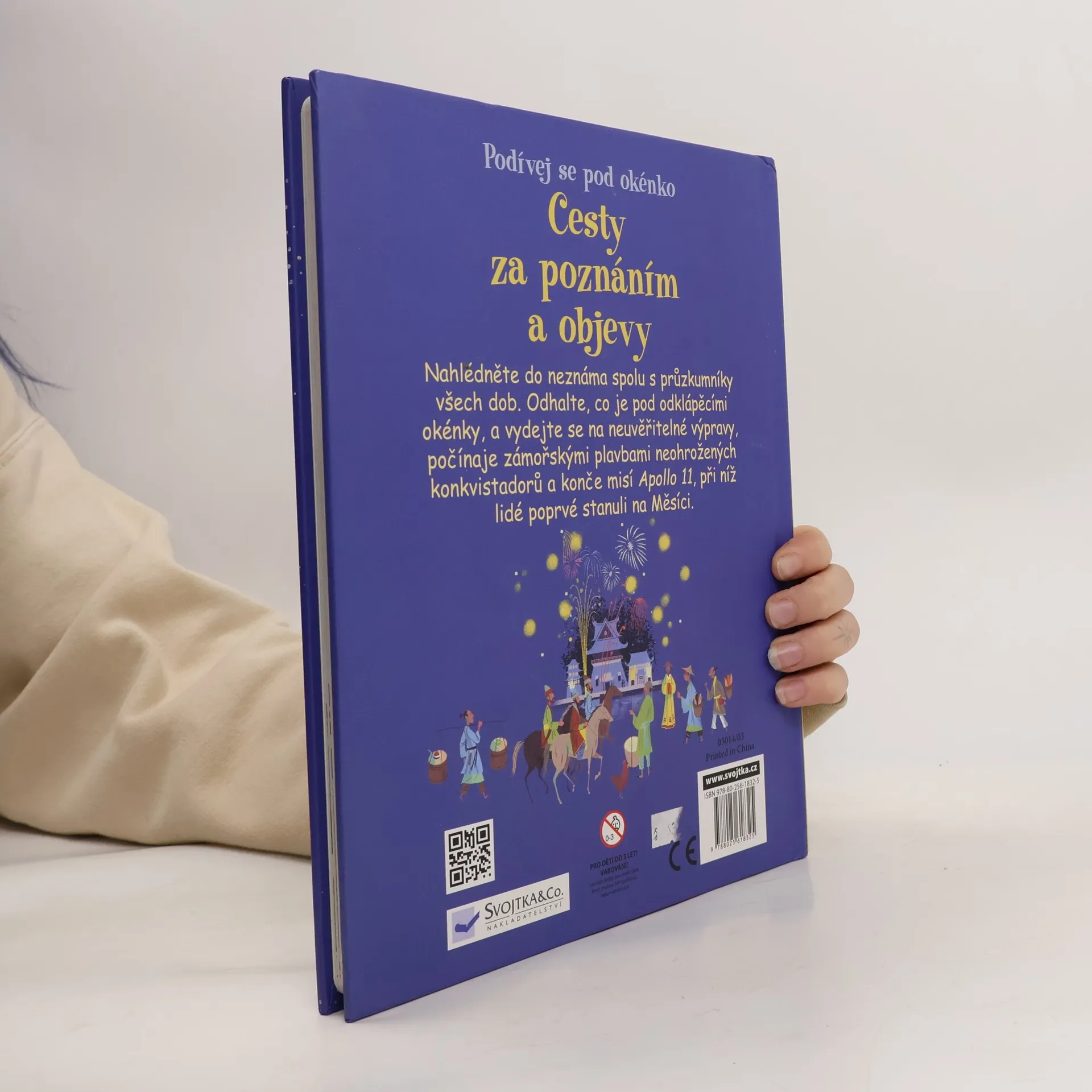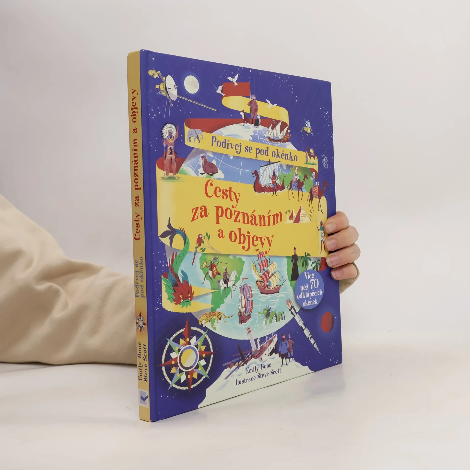 Lidé již po tisíciletí zkoumají svět – aby našli potravu, poklady nebo prostě jen kvůli dobrodružství. Cestovatelé a průzkumníci v minulosti podnikali dlouhé a nebezpečné výpravy za obchodem a poznáním, uskutečňovali první zámořské plavby, vydávali se na cesty do divoké přírody, snažili se svět zmapovat, soupeřili o to, kdo bude první stát na ledových pólech, kdo pokoří nejvyšší horu světa. V době nedávné se snažili jako první vzlétnout do vesmíru, poprvé stanout na Měsíci... Nahlédněte spolu s nimi do neznáma, odhalte, co je pod více než 70 okénky v této knize a vydejte se na cestu za poznáním a objevy!