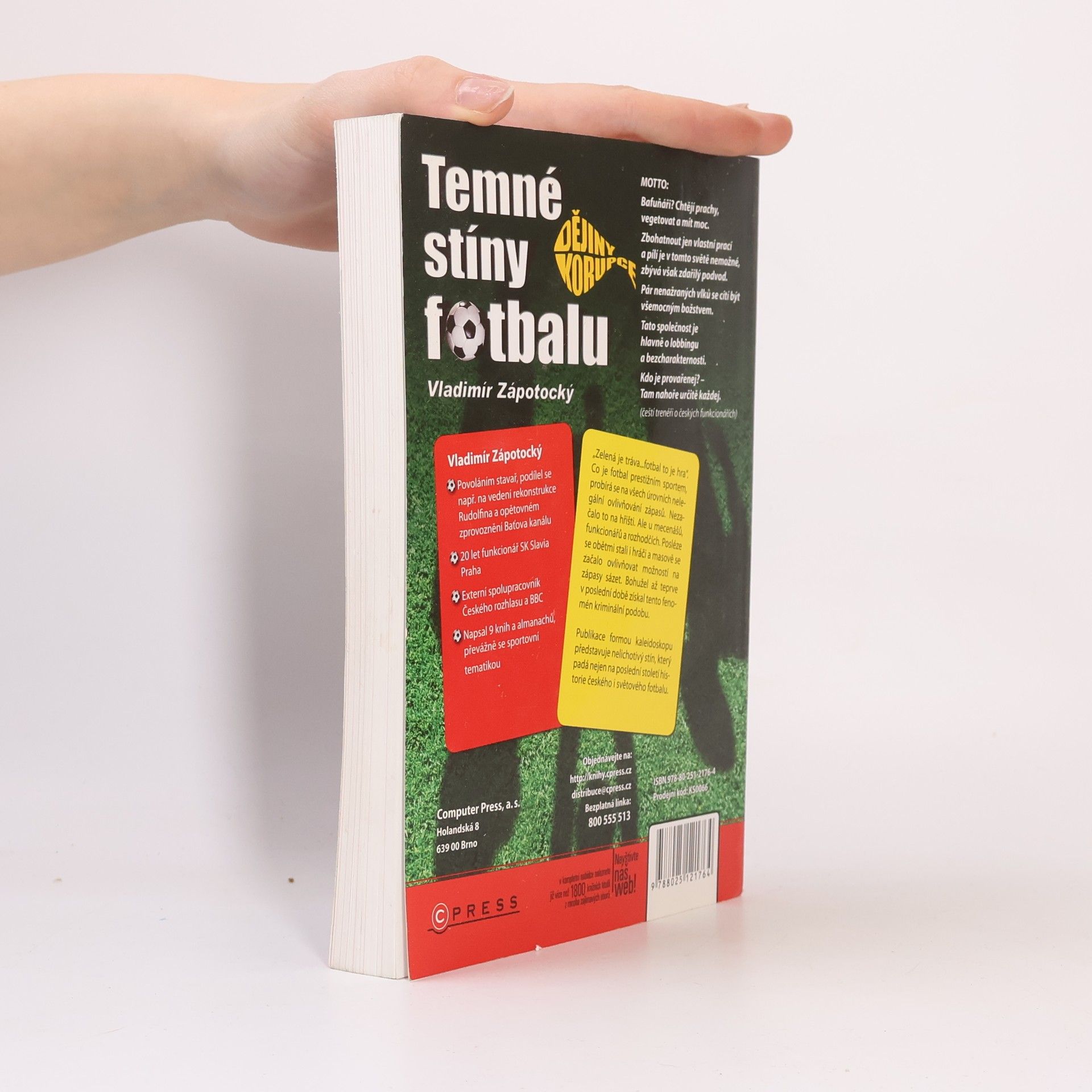 „Zelená je tráva...fotbal to je hra“. Co je fotbal prestižním sportem, probírá se na všech úrovních nelegální ovlivňování zápasů. Nezačalo to na hřišti. Ale u mecenášů, funkcionářů a rozhodčích. Posléze se obětmi stali i hráči a masově se začalo ovlivňovat možností na zápasy sázet. Bohužel až teprve v poslední době získal tento fenomén kriminální podobu. Publikace formou kaleidoskopu představuje nelichotivý stín, který padá nejen na poslední století historie českého i světového fotbalu.