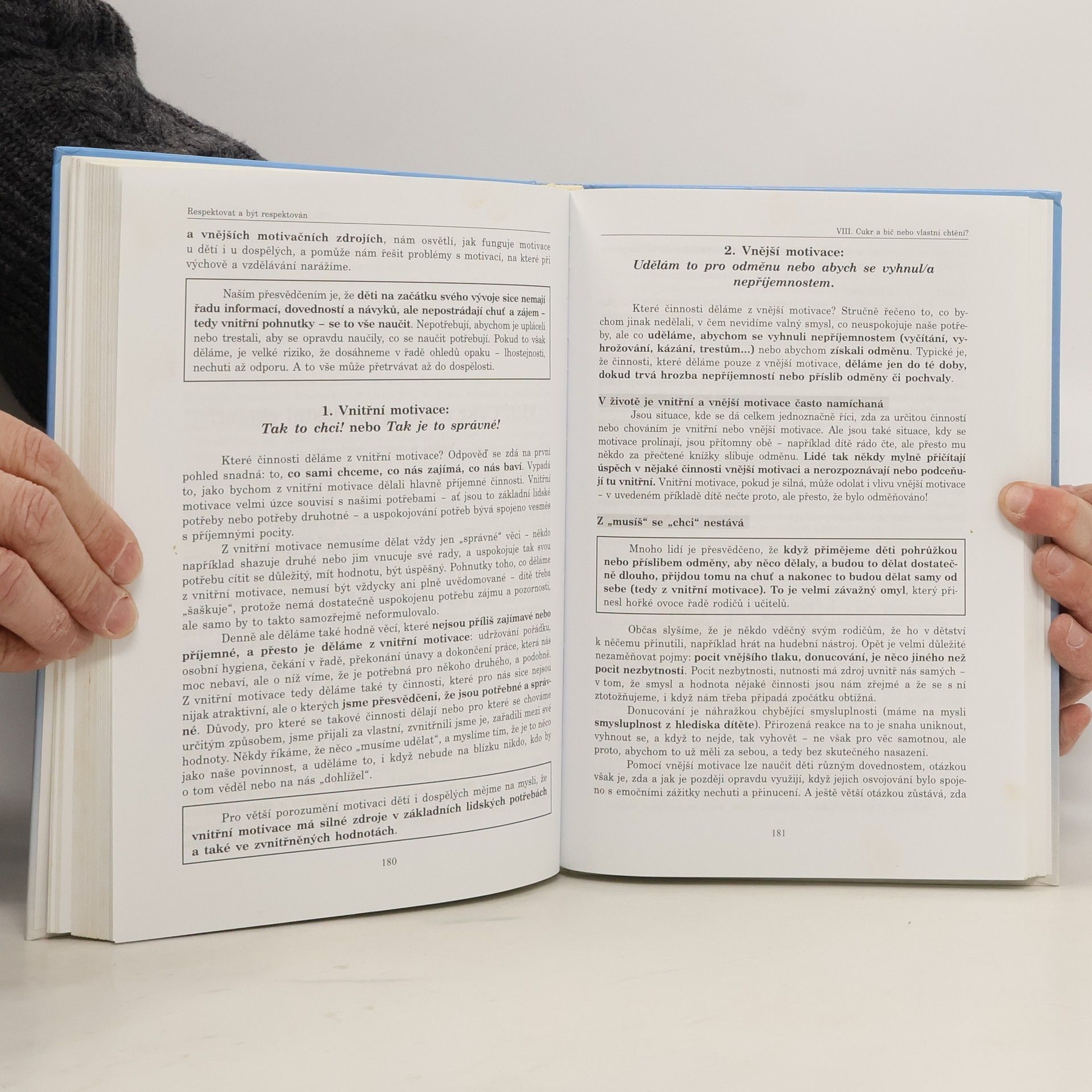 Výchova dětí založená na uplatňování moci a síly je vyčerpávající a přitom málo účinná. Má negativní dopady nejen na plnění každodenních oprávněných požadavků, ale také na sebeúctu, rozvoj osobnosti a vzájemné vztahy všech zúčastněných stran. Totéž platí i pro komunikaci dospělých mezi sebou, kdykoliv v ní převládne vzájemný boj o moc. Kniha Respektovat a být respektován je určena všem, kteří se snaží o partnerský, respektující přístup ve výchově, vzdělávání a v mezilidských vztazích. Nabízí jednak postupy a dovednosti okamžitě využitelné v praxi, jednak pohled na širší souvislosti mocenského a respektujícího pojetí výchovy, vzdělávání a komunikace. Je využitelná nejen pro rodiče a učitele, ale pro všechny, kteří chtějí investovat úsilí do rozšíření repertoáru svých komunikačních dovedností pro zvládání běžných i náročných životních situací. Přirozeným důsledkem osvojení těchto postupů a dovedností je udržení vlivu i dobrých vztahů a vzrůstající pocit vnitřního klidu, sebeúcty a kompetentnosti. Autoři jsou známí jako lektoři stejnojmenného kurzu, který je již řadu let organizován po celé ČR.
