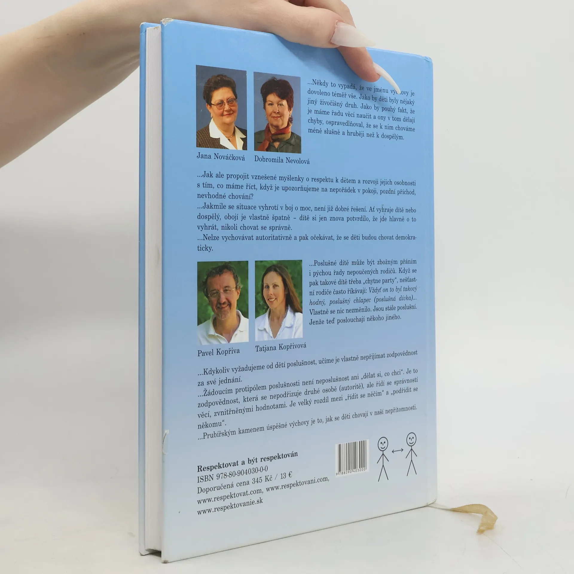Výchova dětí založená na uplatňování moci a síly je vyčerpávající a přitom málo účinná. Má negativní dopady nejen na plnění každodenních oprávněných požadavků, ale také na sebeúctu, rozvoj osobnosti a vzájemné vztahy všech zúčastněných stran. Totéž platí i pro komunikaci dospělých mezi sebou, kdykoliv v ní převládne vzájemný boj o moc. Kniha Respektovat a být respektován je určena všem, kteří se snaží o partnerský, respektující přístup ve výchově, vzdělávání a v mezilidských vztazích. Nabízí jednak postupy a dovednosti okamžitě využitelné v praxi, jednak pohled na širší souvislosti mocenského a respektujícího pojetí výchovy, vzdělávání a komunikace. Je využitelná nejen pro rodiče a učitele, ale pro všechny, kteří chtějí investovat úsilí do rozšíření repertoáru svých komunikačních dovedností pro zvládání běžných i náročných životních situací. Přirozeným důsledkem osvojení těchto postupů a dovedností je udržení vlivu i dobrých vztahů a vzrůstající pocit vnitřního klidu, sebeúcty a kompetentnosti. Autoři jsou známí jako lektoři stejnojmenného kurzu, který je již řadu let organizován po celé ČR.