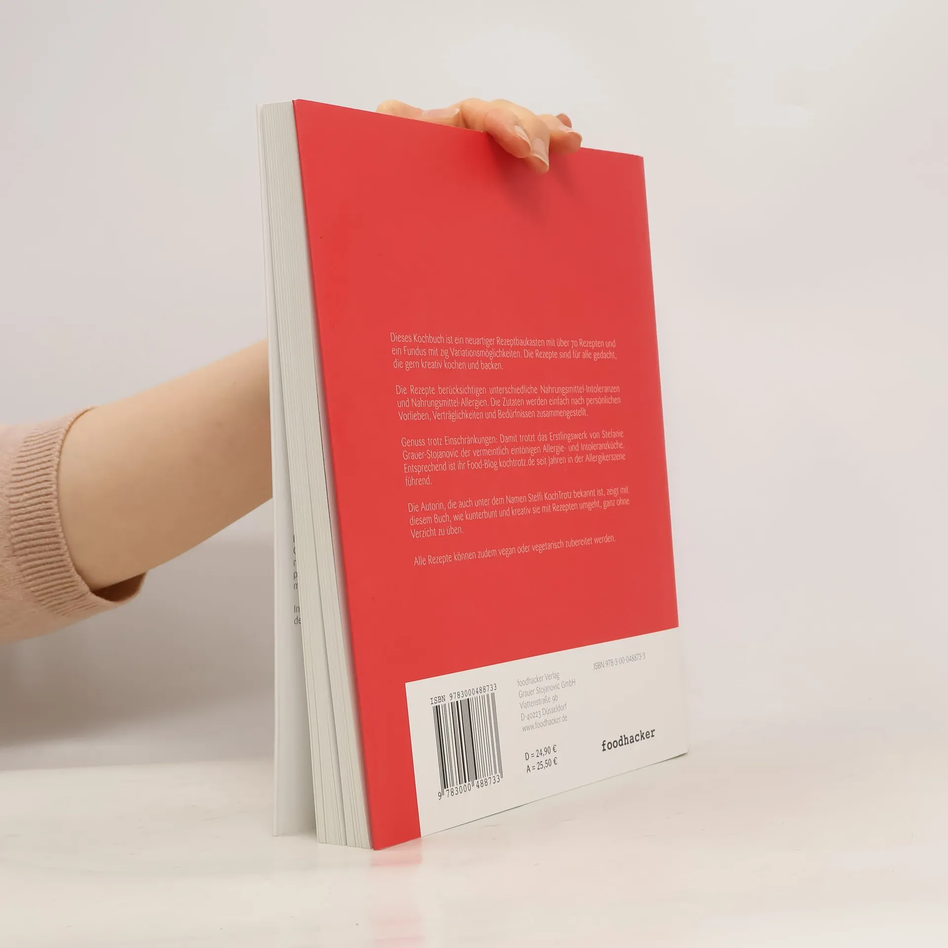 Das erste Kochbuch weltweit für Mehrfach-Intoleranzen und Nahrungsmittel-Allergien. Dieses Kochbuch ist ein neuartiger Rezeptbaukasten mit über 70 Rezepten und ein Fundus mit zig Variationsmöglichkeiten. Die Rezepte sind für alle gedacht, die gern kreativ kochen und backen. Die Rezepte berücksichtigen unterschiedliche Nahrungsmittel-Intoleranzen und Nahrungsmittel-Allergien. Die Zutaten werden einfach nach persönlichen Vorlieben, Verträglichkeiten und Bedürfnissen zusammengestellt. Genuss trotz Einschränkungen: Damit trotzt das Erstlingswerk von Stefanie Grauer-Stojanovic der vermeintlich eintönigen Allergie- und Intoleranzküche. Entsprechend ist ihr Food-Blog kochtrotz. de seit Jahren in der Allergikerszene führend. Die Autorin, die auch unter dem Namen Steffi KochTrotz bekannt ist, zeigt mit diesem Buch, wie kunterbunt und kreativ sie mit Rezepten umgeht, ganz ohne Verzicht zu üben. Im Kochbuch „KochTrotz - Kreativ genießen trotz Einschränkungen, Intoleranzen und Allergien“ finden finden sich Rezepte für Singles, Paare und Familien. Die Rezeptvielfalt erstreckt sich von sojafreien Milchalternativen, Suppen, Salate, Hauptgerichte, Backenwaren, Desserts und Vorratsrezepte. Alle Rezepte können zudem vegan oder vegetarisch zubereitet werden.