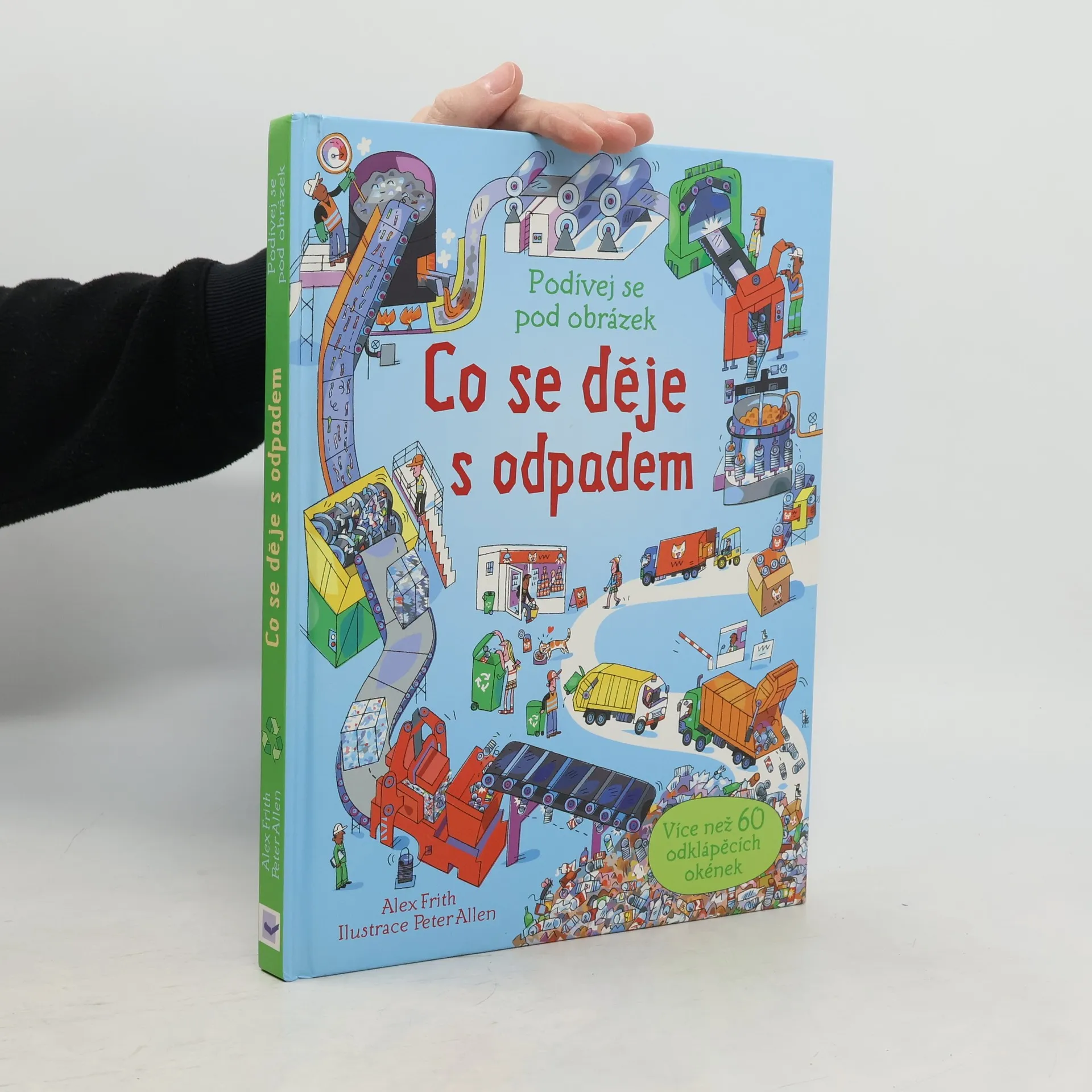 Co se děje s odpadem potom, co jej vyhodíš? Otevři knihu, odklop okýnka a zjistíš to. Sleduj odpad na jeho cestě přes obrovské třídící stroje a všechny druhy recyklačních procesů a uvidíš, jak může být přeměněn v nové funkční věci.