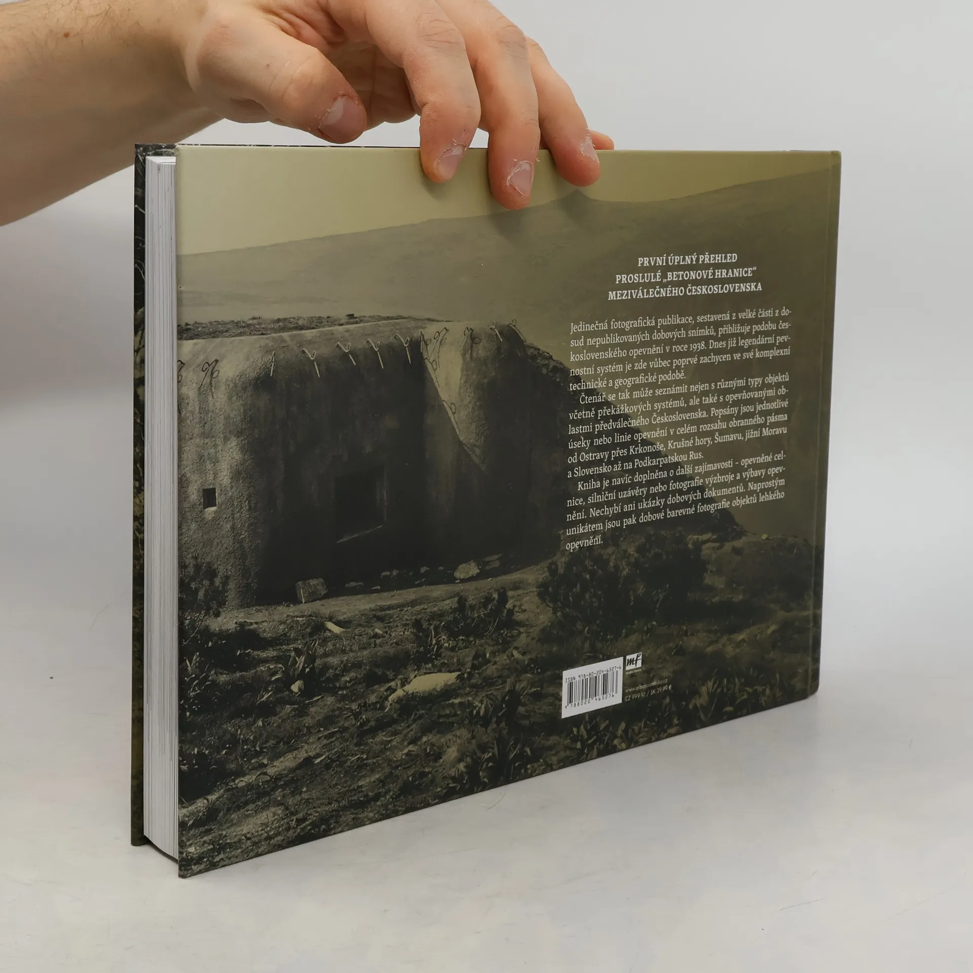 Nejucelenějí fotografická kniha o československém opevnění 1938. Unikátní fotografická publikace, sestavená z drtivé většiny z dosud nepublikovaných dobových snímků, přibližuje původní podobu československého opevnění v roce 1938. V této knize je systém předválečného opevnění vůbec poprvé zachycen ve své komplexní technické a geografické podobě – čtenář se tak může seznámit s různými typy těžkého a lehkého opevnění včetně překážkových systémů, ale i s jednotlivými oblastmi předválečného Československa, ve kterých bylo opevnění budováno. Jsou zde popsány jednotlivé úseky nebo linie opevnění v celém rozsahu obranného pásma od Ostravy přes Krkonoše, Krušné hory, Šumavu, jižní Moravu, Slovensko až na Podkarpatskou Rus včetně vnitrozemských linií v Čechách. Kniha je navíc doplněna o další zajímavosti související s předválečným opevněním – opevněné celnice, silniční uzávěry nebo fotografie výzbroje a výbavy opevnění. Nechybí ani ukázky zajímavých dobových dokumentů. Opravdovou lahůdkou jsou pak unikátní dobové barevné fotografie objektů lehkého opevnění.