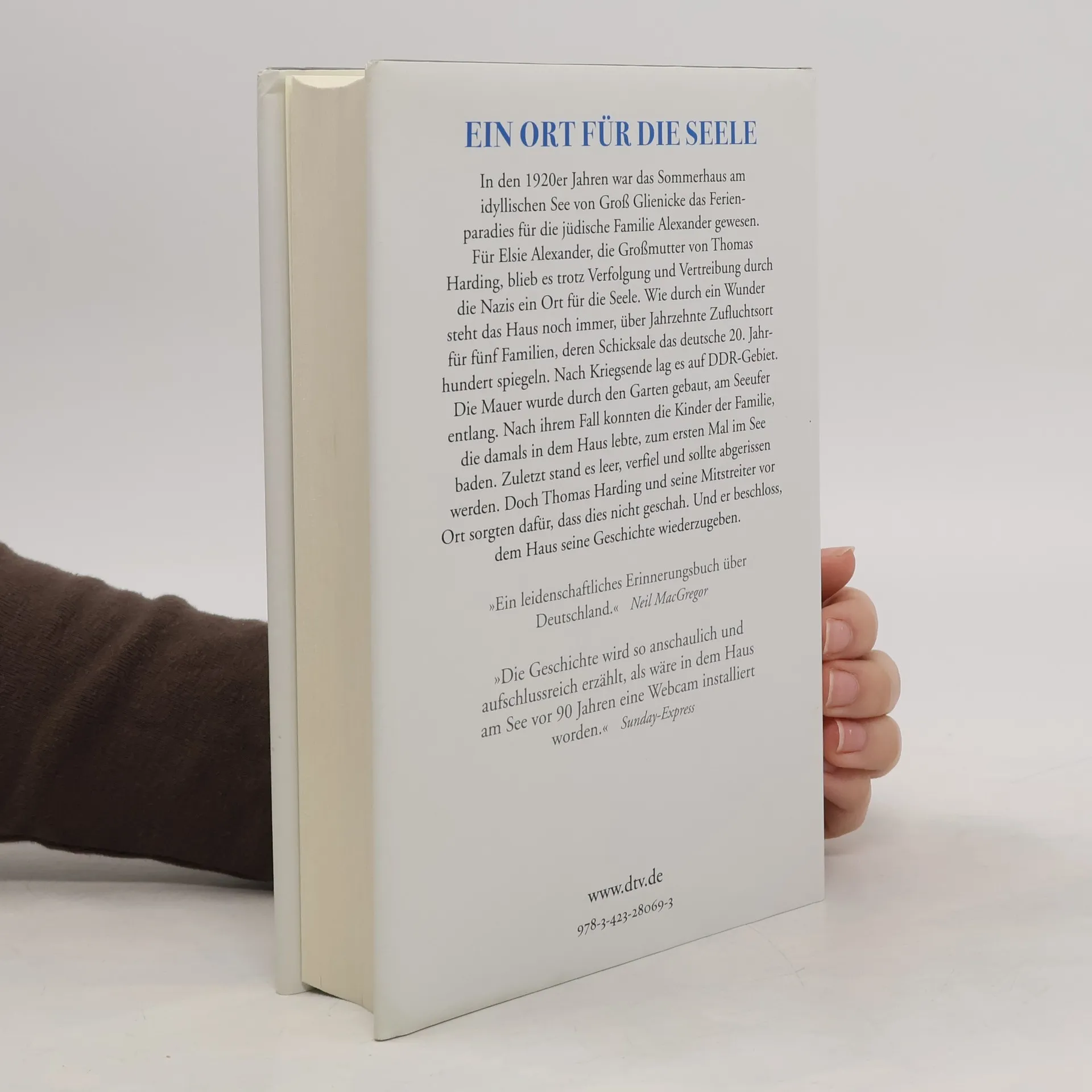 Ein Ort für die Seele In den 20er Jahren wurde das Haus am See das Sommerparadies für die jüdische Familie Alexander. Für Elsie Alexander, Großmutter von Autor Thomas Harding, ist es auch nach der Verfolgung und Vertreibung durch die Nazis ein Ort für die Seele geblieben. Danach pachtete Will Meisel, Komponist und NSDAP-Mitglied, das Anwesen. Im Krieg bot das Haus seiner Familie Zuflucht. Nach der Teilung Deutschlands lag es in der sowjetischen Besatzungszone und späteren DDR, direkt an der Grenze. Wieder wurde es zur Zuflucht für Familien. Sie sahen, wie am Gartenende die Mauer gebaut wurde und wie sie fiel. Thomas Harding hatte seine Großmutter nach der Wende einmal dorthin begleitet. Viele Jahre später kam er wieder. Es war wie ein Wunder. Das Haus stand immer noch, inzwischen aber verlassen und dem Verfall preisgegeben. Er beschloss, die Geschichte dieses Hauses und der Menschen, die in ihm gelebt hatten, zu erzählen. Und nicht nur das: Er konnte die Stadt Potsdam, inzwischen Besitzerin des Grundstücks, davon überzeugen, dass dieses Haus Denkmalschutz verdient.