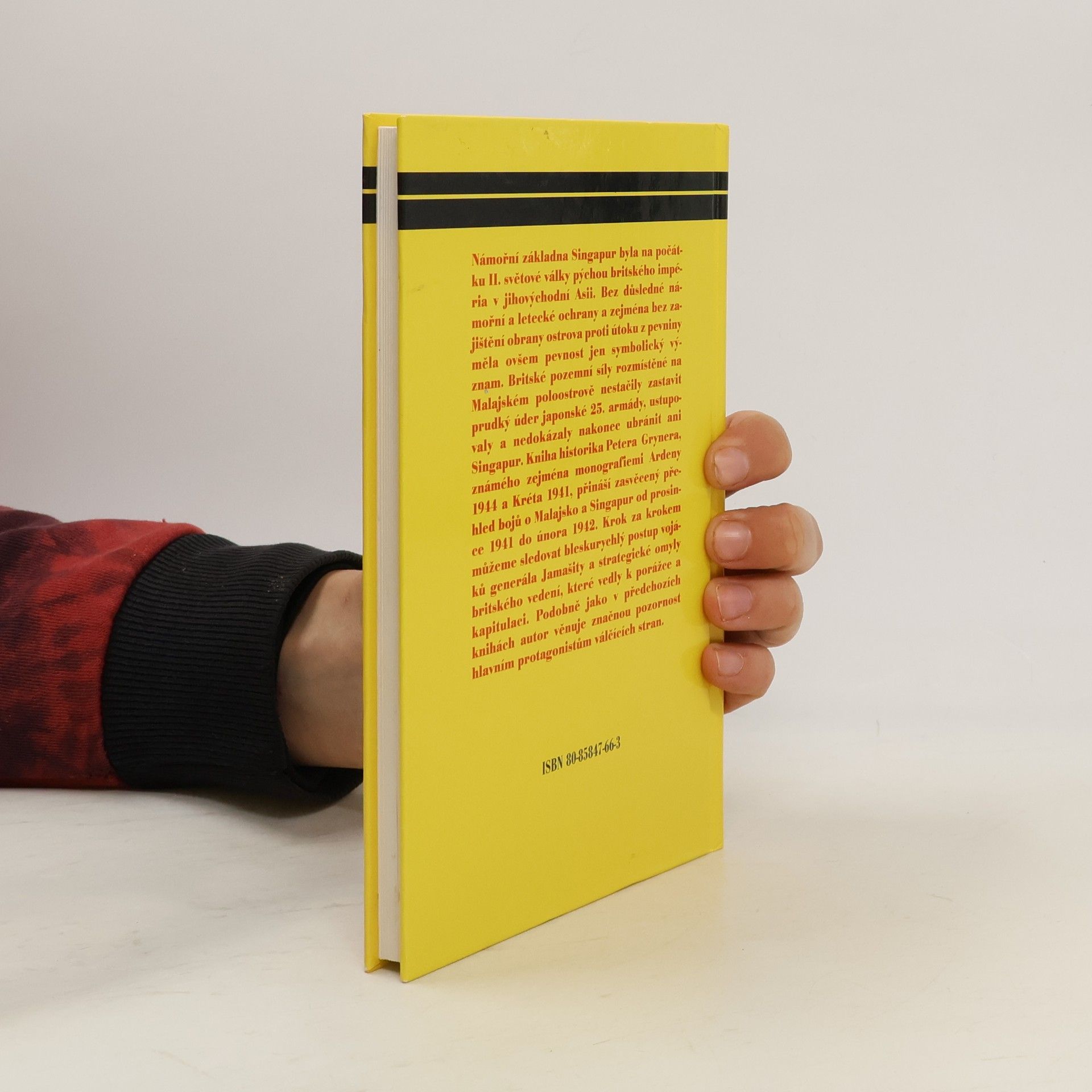 Námořní základna Singapur byla na počátku II. světové války pýchou britského impéria v jihovýchodní Asii. Bez důsledné námořní a letecké ochrany a zejména bez zajištění obrany ostrova proti útoku z pevniny měla ovšem pevnost jen symbolický význam. Britské pozemní síly rozmístěné na Malajském poloostrově nestačily zastavit prudký úder japonské 25. armády, ustupovaly a nedokázaly nakonec ubránit ani Singapur. Kniha historika Petera Grynera, známého zejména monografiemi Ardeny 1944 a Kréta 1941, přináší zasvěcený přehled bojů o Malajsko a Singapur od prosince 1941 do února 1942. Krok za krokem můžeme sledovat bleskurychlý postup vojáků generála Jamašity a strategické omyly britského vedení, které vedly k porážce a kapitulaci. Podobně jako v předchozích knihách autor věnuje značnou pozornost hlavním protagonistům válčících stran.... celý text