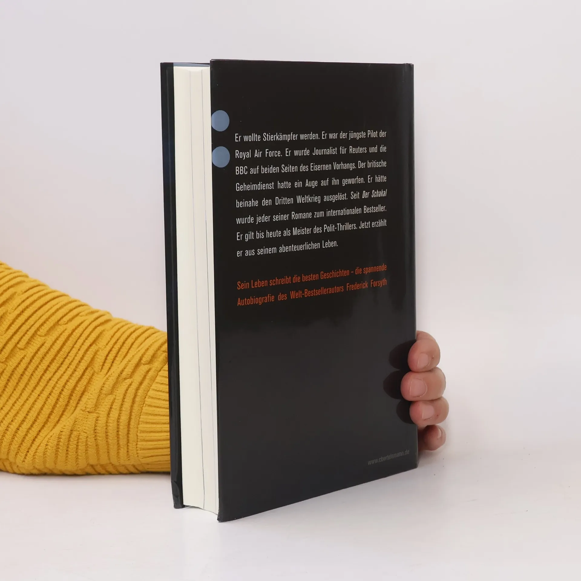 Sein Leben schreibt die besten Geschichten – die spannende Autobiografie des Welt-Bestsellerautors Frederick Forsyth war der jüngste Pilot der Royal Air Force, anschließend ein erfolgreicher Journalist an den Brennpunkten der Weltpolitik, bevor er seine Karriere als Autor mit einem Paukenschlag begann: Der Schakal. Seitdem haben seine Thriller Maßstäbe gesetzt, denn sie sind so nah an der Wirklichkeit, dass man sie als Prophezeiungen lesen kann. Er nimmt die Leser mit auf eine Zeitreise, die für deutsche Leser besonders interessant ist. Nach dem Mauerbau berichtet Forsyth als Korrespondent aus Ost-Berlin. Dabei ist er auch dem amerikanischen Geheimdienst behilflich. Nur leider ist er bei seinen amourösen Abenteuern so unvorsichtig, dass er das Land Hals über Kopf verlassen muss. Forsyth erzählt dabei von ersten Erfahrungen als Schüler im Nachkriegsdeutschland, von gefährlichen Abenteuern auf allen Kontinenten bis zur Erfüllung eines Traums, den er als kleiner Junge hatte. Ein Leben – spannend wie ein Thriller. Ausstattung: 16 Seiten farbiger Bildteil