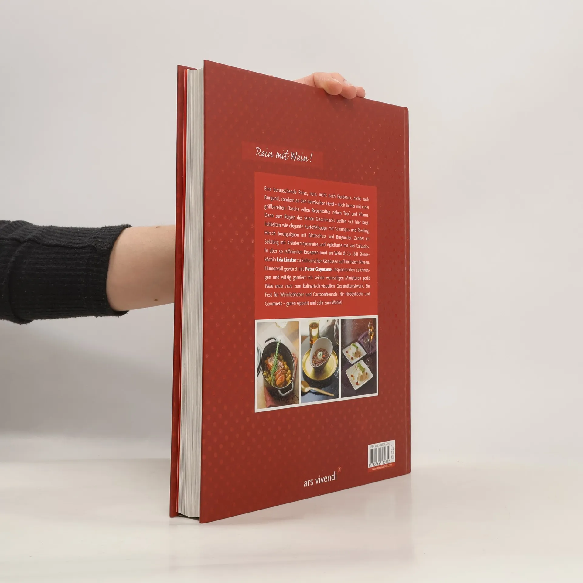 Das ideale Kochbuch für jeden Weinliebhaber! Nach dem großen Erfolg von "Das Gelbe vom Ei" widmen sich die Spitzenköchin Léa Linster und der Künstler Peter Gaymann in ihrem zweiten gemeinsamen Kochbuch voller Hingabe dem edlen Getränk Wein. Über 50 Rezepte mit Wein wie z.B.: - Seezunge mit Schampus-Krabben und Lauch-Linguine - Ente mit pikanter Glühweinsauce - Nougat-Halbgefrorenes mit Krokant und Vin Santo Sie kreiert damit hinreißende Gerichte; er zeichnet mit schwungvoller Hand witzige, weinselige Miniaturen. Ein Kochbuch mit über 50 Rezepten für Weinliebhaber und Cartoonfreunde, Hobbyköche und Genießer - vor allem aber ein Buch mit einer glasklaren Botschaft: Wein muss rein! Kreative Gerichte rund um den Wein von Spitzenköchin Léa Linster, garniert mit humorvollen Illustrationen von Peter Gaymann.