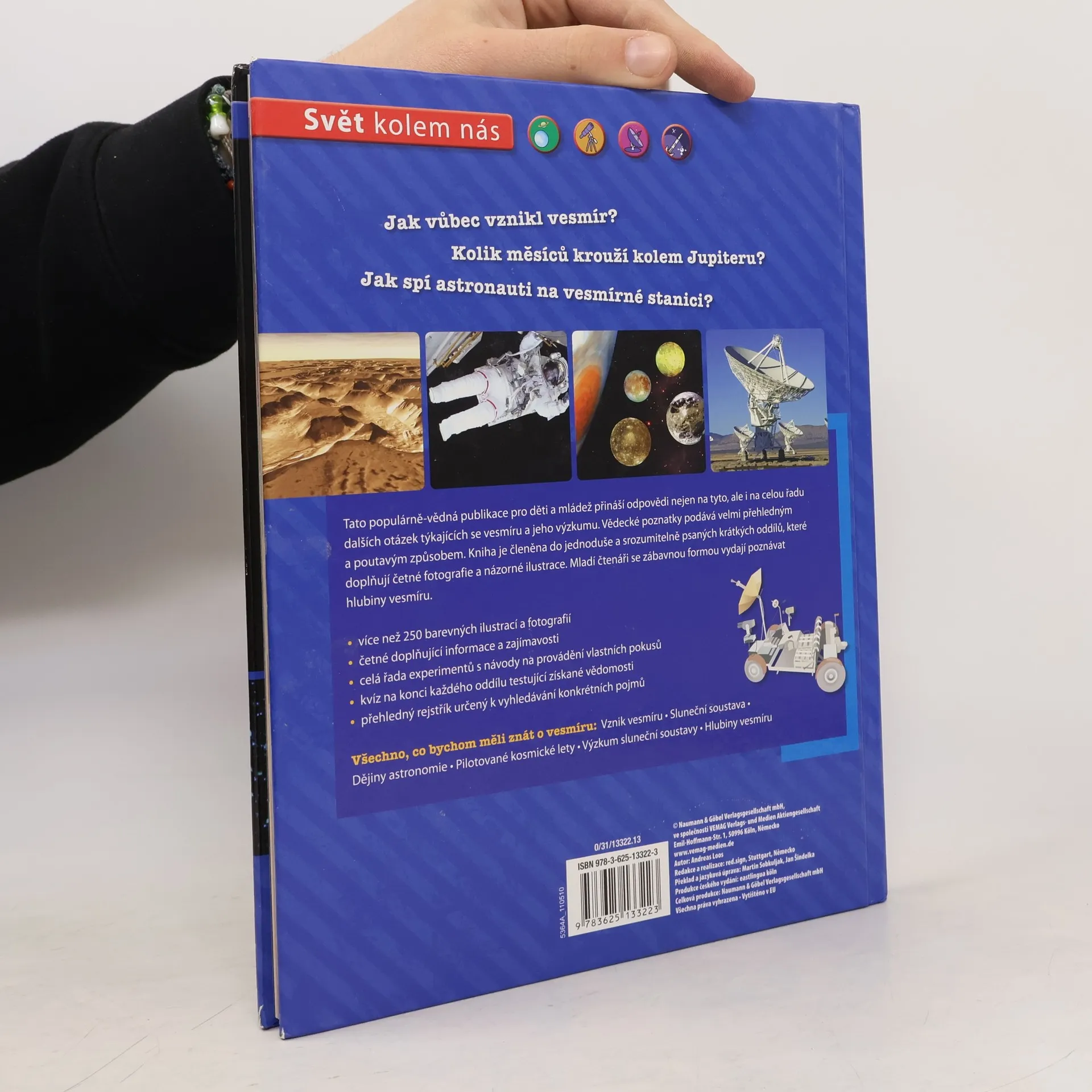 Populárně-naučná publikace pro děti a mládež přehledně a poutavě představuje vesmír a jeho výzkum. Kniha je doplněna barevnými ilustracemi a fotografiemi, zajímavostmi, návody na provádění vlastních pokusů a kvízy.
