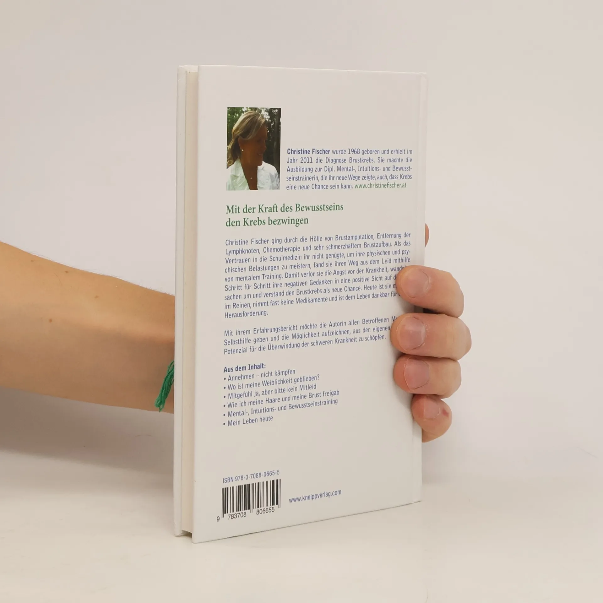 MIT DER KRAFT DES BEWUSSTSEINS DEN KREBS BEZWINGEN Christine Fischer ging durch die Hölle von Brustamputation und Chemotherapie. Als das Vertrauen in die Schulmedizin ihr nicht genügte, um ihre physischen und psychischen Belastungen zu meistern, fand sie ihren Weg aus dem Leid mithilfe von mentalem Training. Damit verlor sie die Angst vor der Krankheit, wandelte Schritt für Schritt ihre negativen Gedanken in eine positive Sicht auf die Tatsachen um und verstand den Brustkrebs als neue Chance. Heute ist sie mit sich im Reinen, nimmt fast keine Medikamente und ist dem Leben dankbar für diese Herausforderung. Mit ihren Erfahrungen möchte die Autorin allen Betroffenen Mut zur Selbsthilfe geben und die Möglichkeit aufzeichnen, aus den eigenen Kräften Potenzial für die Überwindung der schweren Krankheit zu schöpfen. Aus dem Inhalt: - Annehmen, nicht kämpfen - Wie ich meine Haare und meinen Busen freigab - Wo ist meine Weiblichkeit geblieben? - Mitgefühl ja, aber bitte kein Mitleid - Mental-, Intuitions- und Bewusstseinstraining