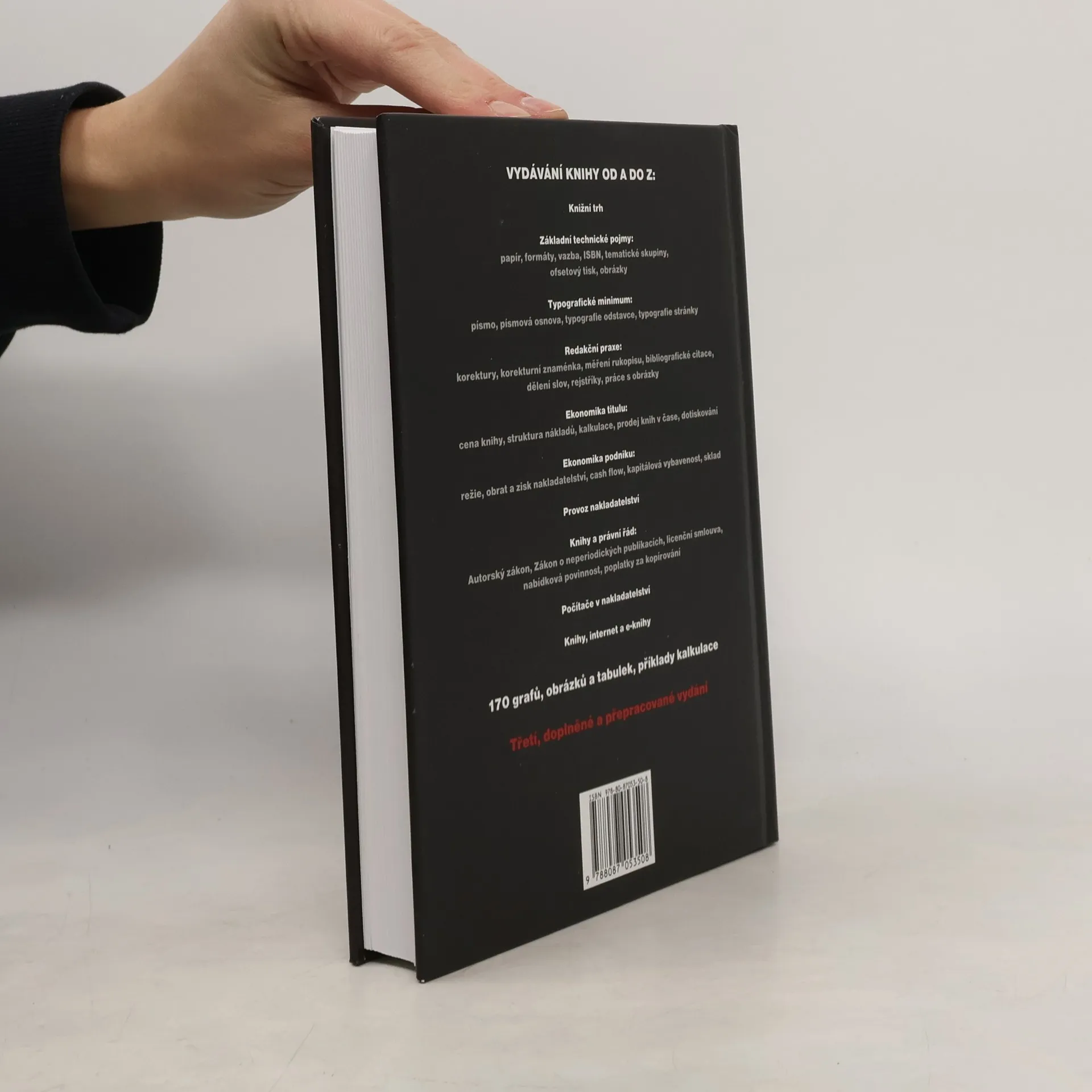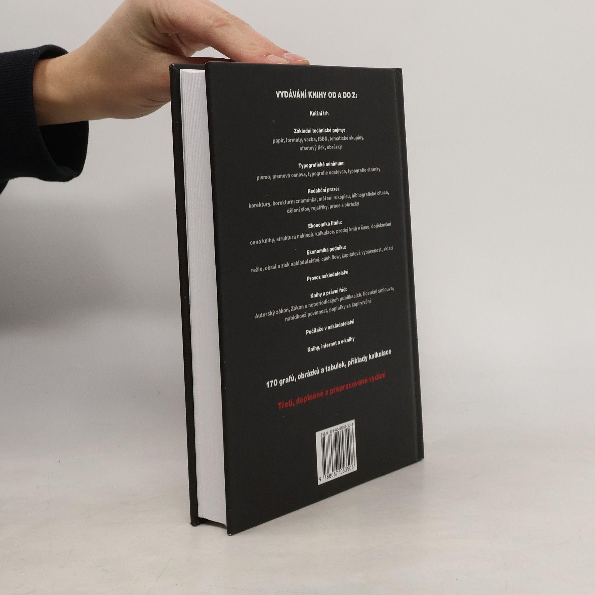 Třetí revidované a doplněné vydání příručky nakladatele, která prezentuje důležité informace potřebné při vydávání knih, mezi které patří: základní pojmy, typografické minimum, technologie redakční práce, práce s obrázky, korektury, bibliografické odkazy, rejstříky, ekonomika titulu a podniku, organizace nakladatelství, právní normy, využití počítačů a internetu, vlastnosti českého i mezinárodního knižního trhu.