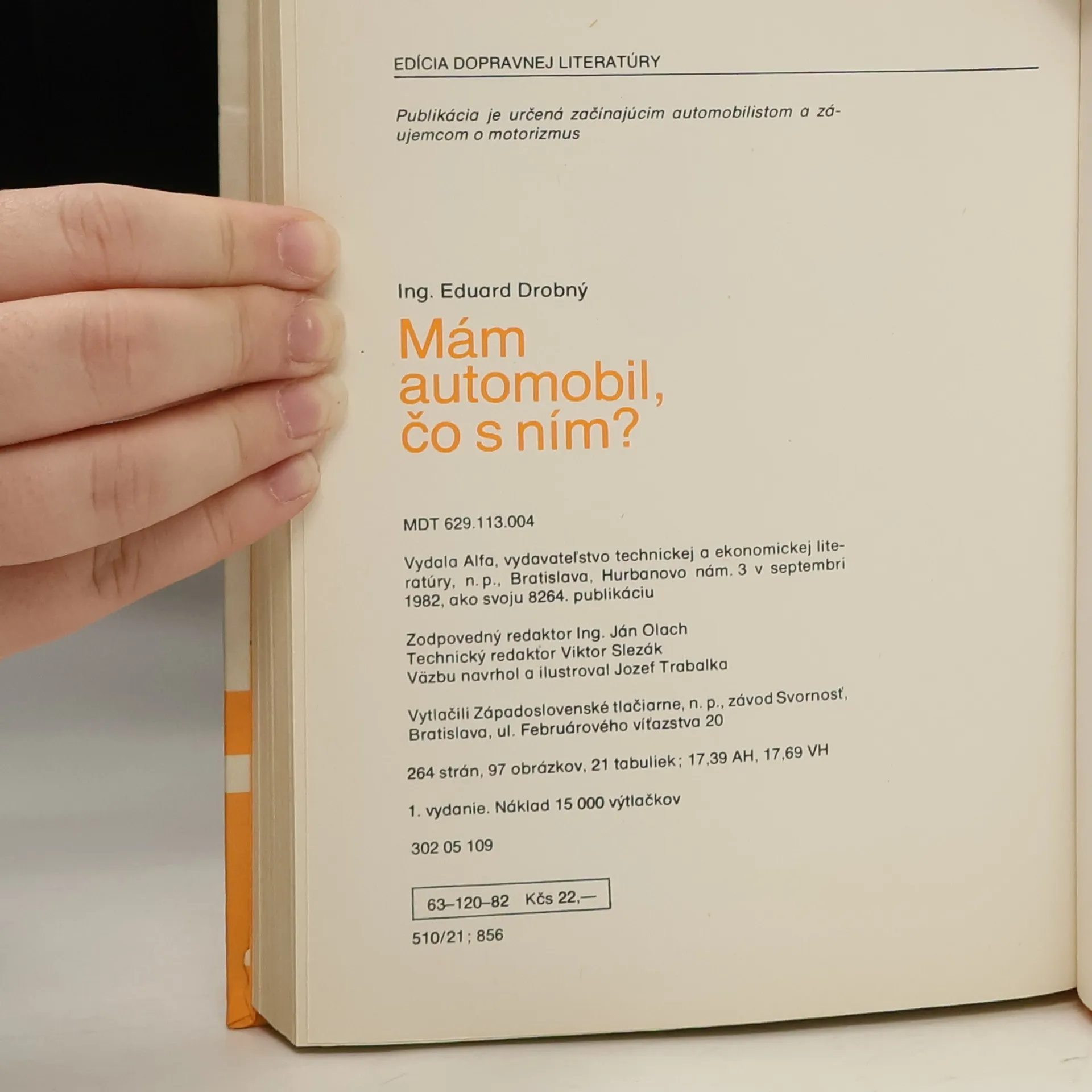 Publikácia obsahuje základné otázky týkajúce sa automobilu z hľadiska budúceho majiteľa a neskôr majiteľa automobilu. Systematicky sú tu predkladané otázky, aký si vybrať automobil, ako postupovať pri kúpe nového ale aj ojazdeného automobilu - určená je všetkým začínajúcim automobilistoma pre širokú verejnosť...