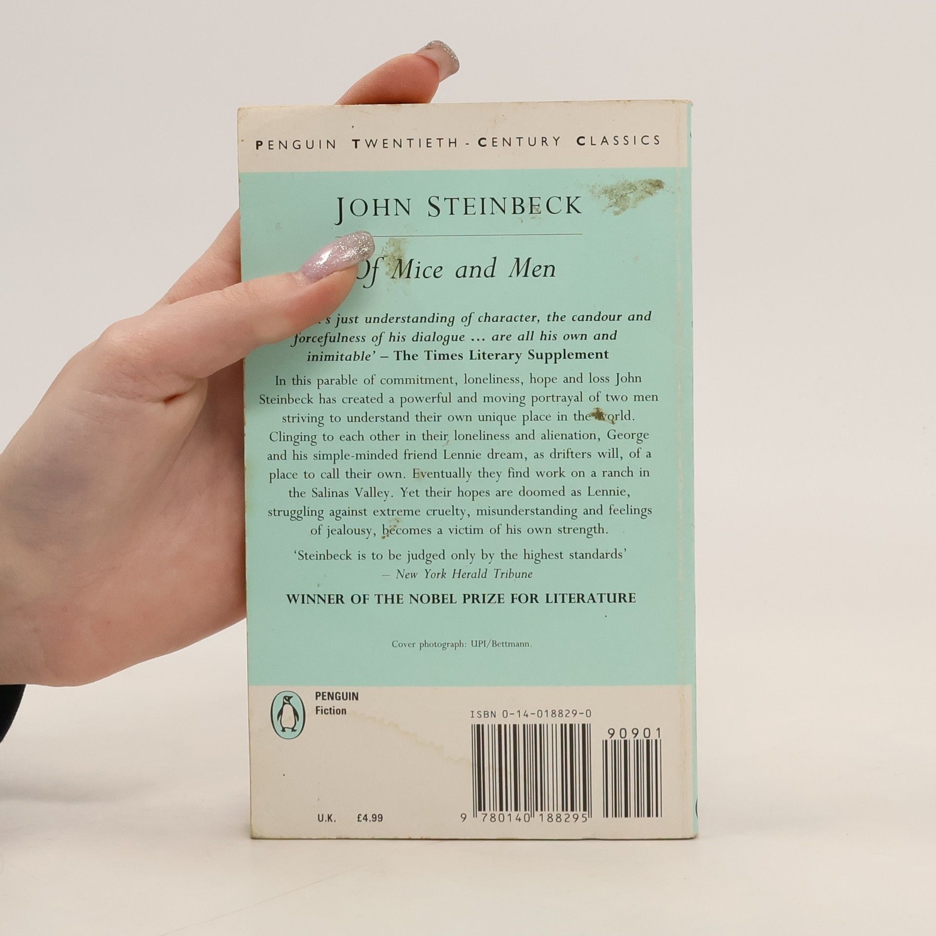 "Of Mice and Men" was John Steinbeck's first masterpiece. Originally published in 1937, it's the timeless story of George Milton and Lennie Small, ranch hands who drift from job to job, always one step ahead of the law and a few dollars from the poorhouse. George is small, wiry, sharp-tongued and quick-tempered; slow witted Lennie is his opposite--an immense man, brutishly strong but naturally docile, a giant with the mind of a child. Despite their difference, George and Lennie are bound together by a shared vision: their own small farm, where they'll raise cows, pigs, chickens, and rabbits, where they'll be their own bosses and live off the fat of the land. When they find work on a ranch in California's Salinas Valley, the dream at last seems within reach. If they can just save up a little money. . . . But their hopes, like "the best-laid schemes of mice and men," begin to go awry. The story unfolds with the power and inevitability of a Greek tragedy, as Lennie commits an accidental murder, and George, in a riveting, deeply moving finale, must do what he can to make things turn our right.