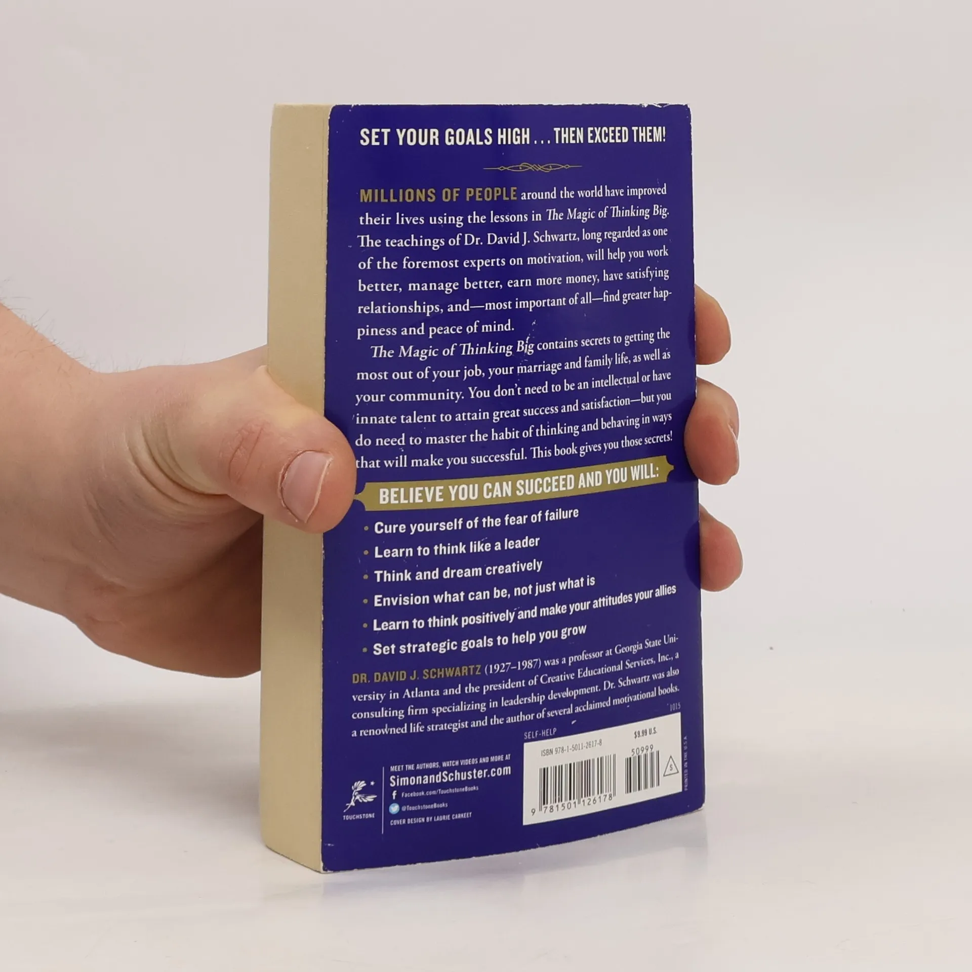 SET YOUR GOALS HIGH . . . THEN EXCEED THEM! MILLIONS OF PEOPLE around the world have improved their lives using the lessons in The Magic of Thinking Big. The teachings of Dr. David J. Schwartz, long regarded as one of the foremost experts on motivation, will help you work better, manage better, earn more money, have satisfying relationships, and—most important of all—find greater happiness and peace of mind. The Magic of Thinking Big contains secrets to getting most out of your job, your marriage and family life, as well as your community. You don't need to be an intellectual or have innate talent to attain great success and satisfaction—but you do need to master the habit of thinking and behaving in ways that will make you successful. This book gives you those secrets! BELIEVE YOU CAN SUCCEED AND YOU WILL: - Cure yourself of the fear of failure - Learn to think like a leader - Think and dream creatively - Envision what can be, not just what is - Learn to think positively and make your attitudes your allies - Set strategic goals to help you grow