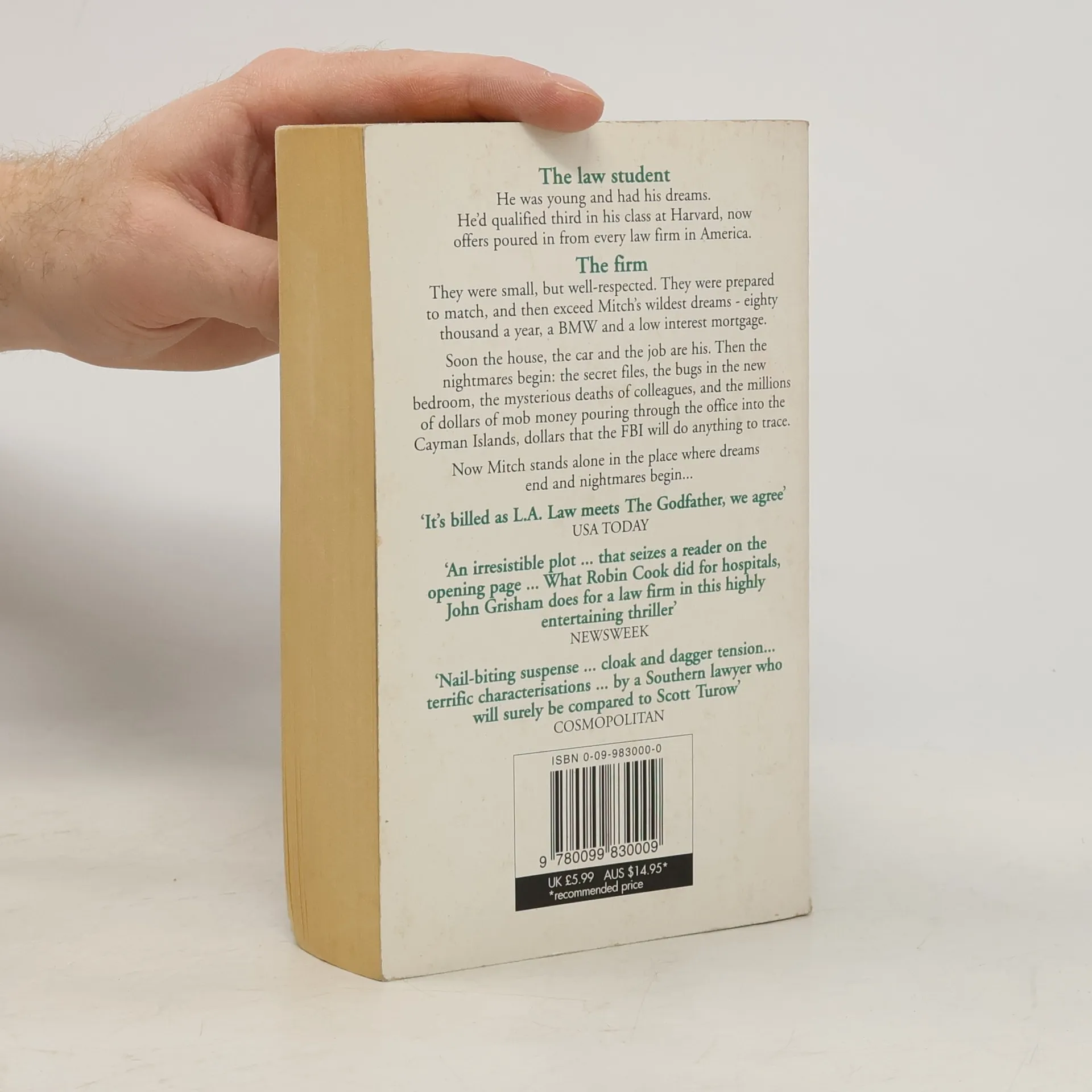 Mitch qualified at Harvard, third in his class, and is sought by law firms all over America. The one that gets him is small, but well-respected, and pays him beyond his wildest dreams. But then the nightmares begin - secret files, bugs in the bedroom, colleagues' mysterious deaths and mob money.