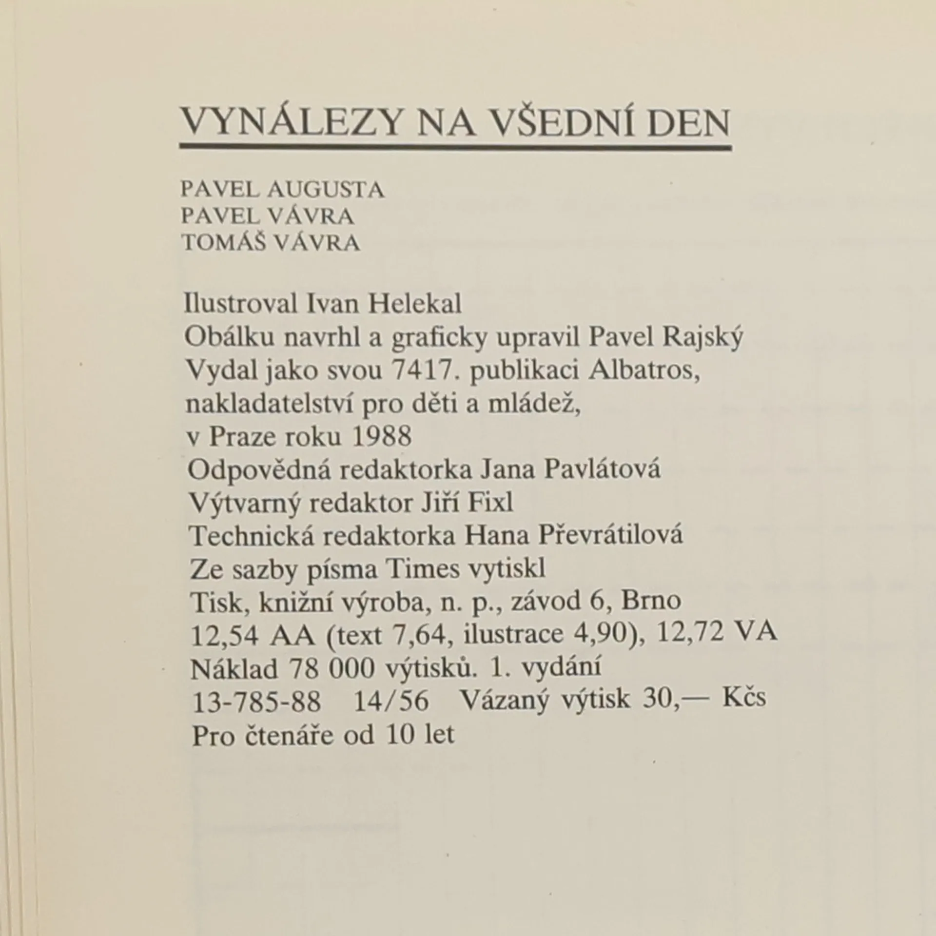 Vynálezy na všední den, Pavel Augusta, Pavel Vávra, Tomáš Vávra, Ivan Helekal
