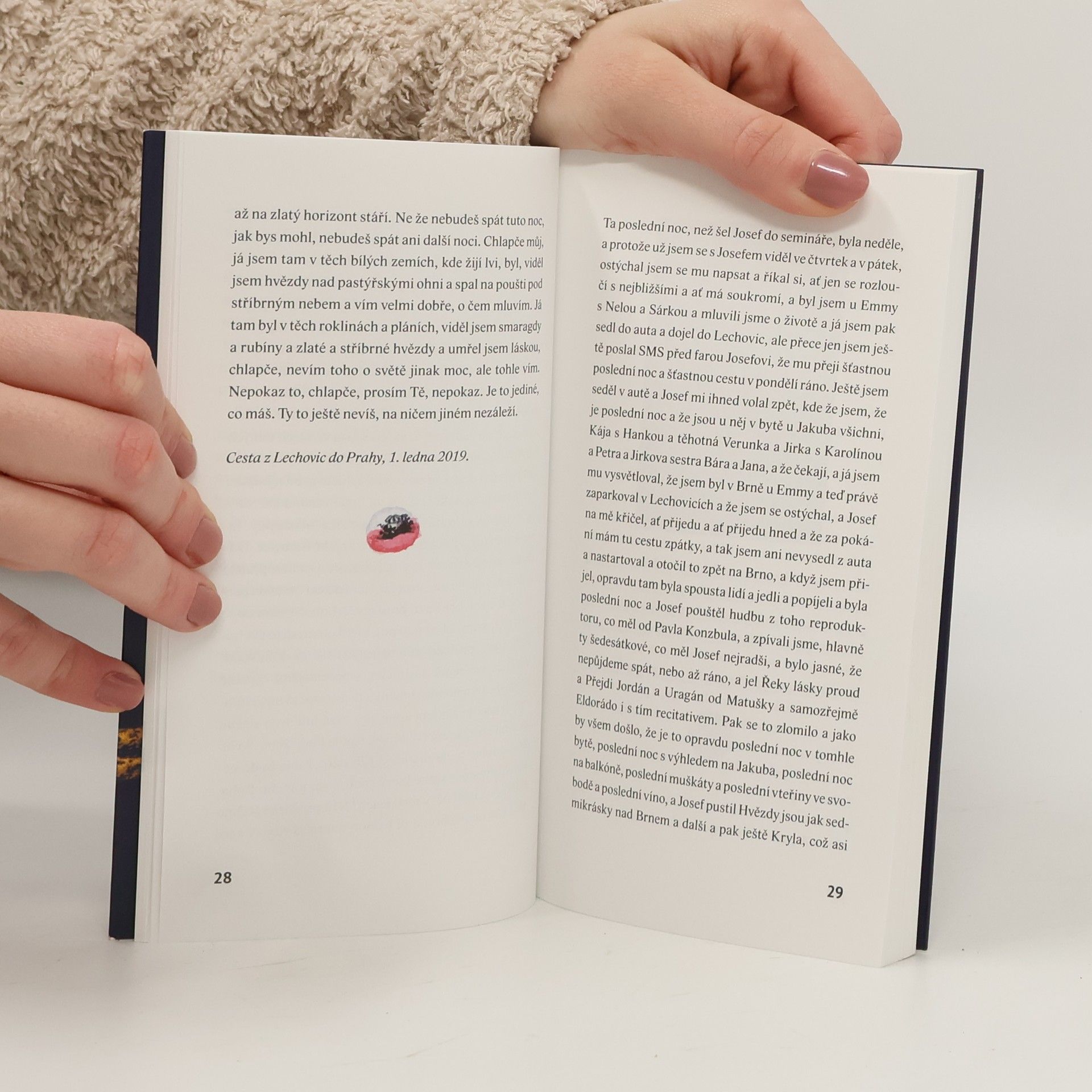 Dnes si mladí fotí selfíčka, aby, snad, zachytili důležité momenty života. Naučil jsem se selfíčka nikoli fotografovat, ale psát. Chci teď spíše ustoupit do pozadí a nechat čtenářovu fantazii pracovat, chci ukázat jen náčrtky. Dříve si lidé psali deníky, aby pomohli paměti a zachytili pomíjivé okamžiky. Rembrandt si občas kreslil rychlé skicy, pérovky, zachycení momentu pár čarami. Dnes si mladí fotí selfíčka, aby, snad, zachytili důležité momenty života. Naučil jsem se selfíčka nikoli fotografovat, ale psát. Chci teď spíše ustoupit do pozadí a nechat čtenářovu fantazii pracovat, chci ukázat jen náčrtky. Caspar David Friedrich u svých obrazů maloval postavy otočené zády k divákovi, aby ho vtáhl do děje. Dělám si velkou naději, že ty okamžiky, které jsou čímsi výjimečné, čtenář v té či oné podobě zažil taky, a že snad v něm mohou něco rozeznít, jako rozezněly ve mně.