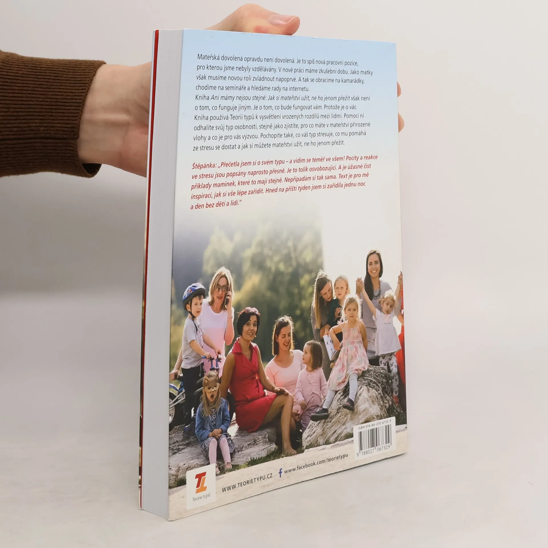 Mateřská dovolená opravdu není dovolená. Je to spíš nová pracovní pozice, pro kterou jsme nebyly vzdělávány. V nové práci máme zkušební dobu. Jako matky však musíme novou roli zvládnout napoprvé. A tak se obracíme na kamarádky, chodíme na semináře, hledáme rady na internetu. Kniha však není o tom, co funguje jiným. Je o tom, co bude fungovat vám. Protože je o vás. Kniha používá Teorii typů k vysvětlení vrozených rozdílů mezi lidmi. Pomocí ní odhalíte svůj typ osobnosti, stejně jako zjistíte, pro co máte v mateřství přirozené vlohy a co je pro vás výzvou. Pochopíte také, co váš typ stresuje, co mu pomáhá ze stresu se dostat a jak si můžete mateřství užít, ne ho jenom přežít.