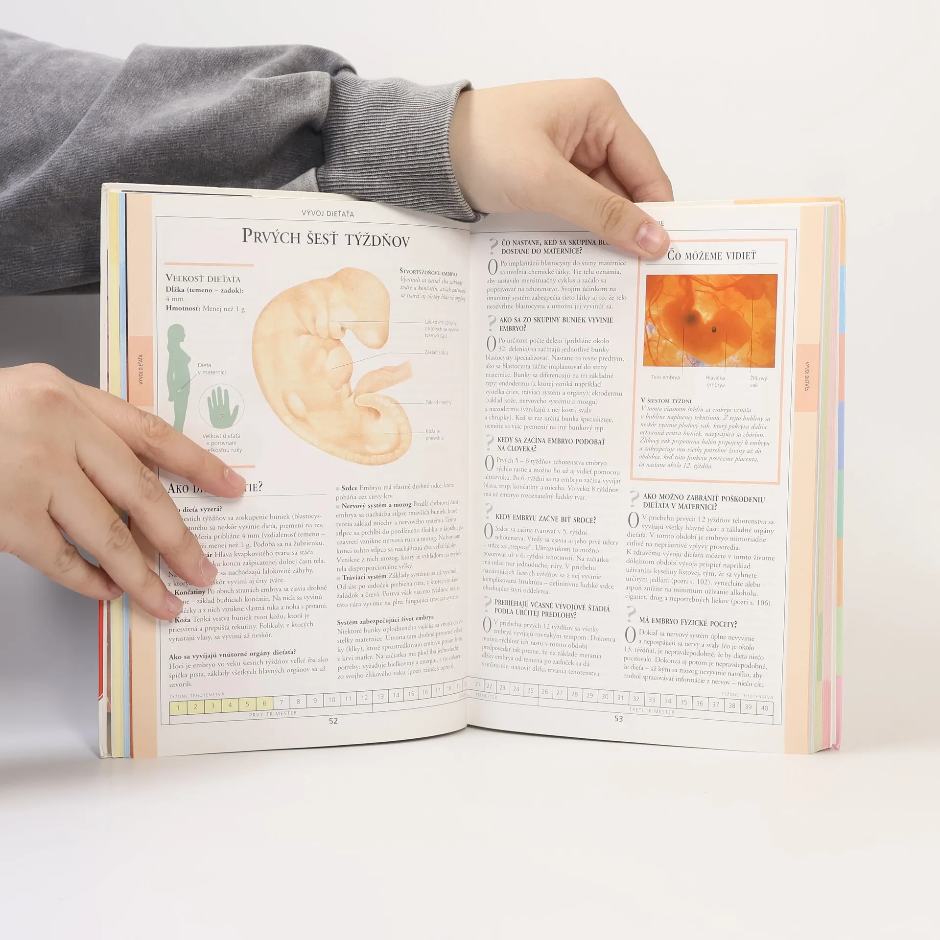 Príprava na tehotenstvo, Prenatálna starostlivosť, Vývoj dieťaťa, Telesné zmeny, Udržiavanie kondície a zdravia, Ťažkosti v tehotenstve, Pôrod, Prvých šesť týždňov.