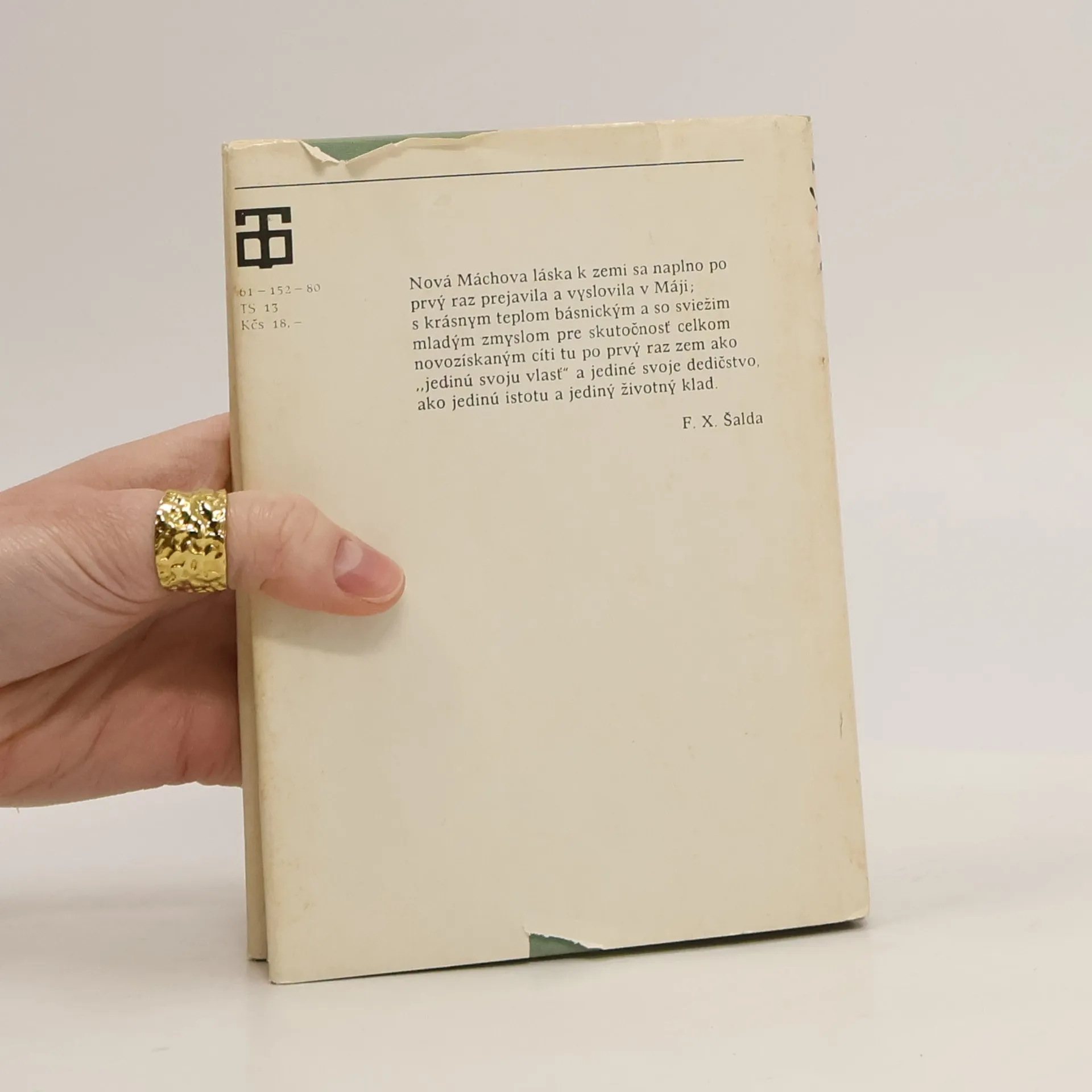 Nová Máchova láska k zemi sa naplno po prvý raz prejavila a vyslovila v Máji; s krásnym teplom básnickým a so sviežim mladým zmyslom pre skutočnosť celkom novozískaným cíti tu po prvý raz zem ako "jedinú svoju vlasť" a jediné svoje dedičstvo, ako jedinú istotu a jediný životný klad. 61-152-80