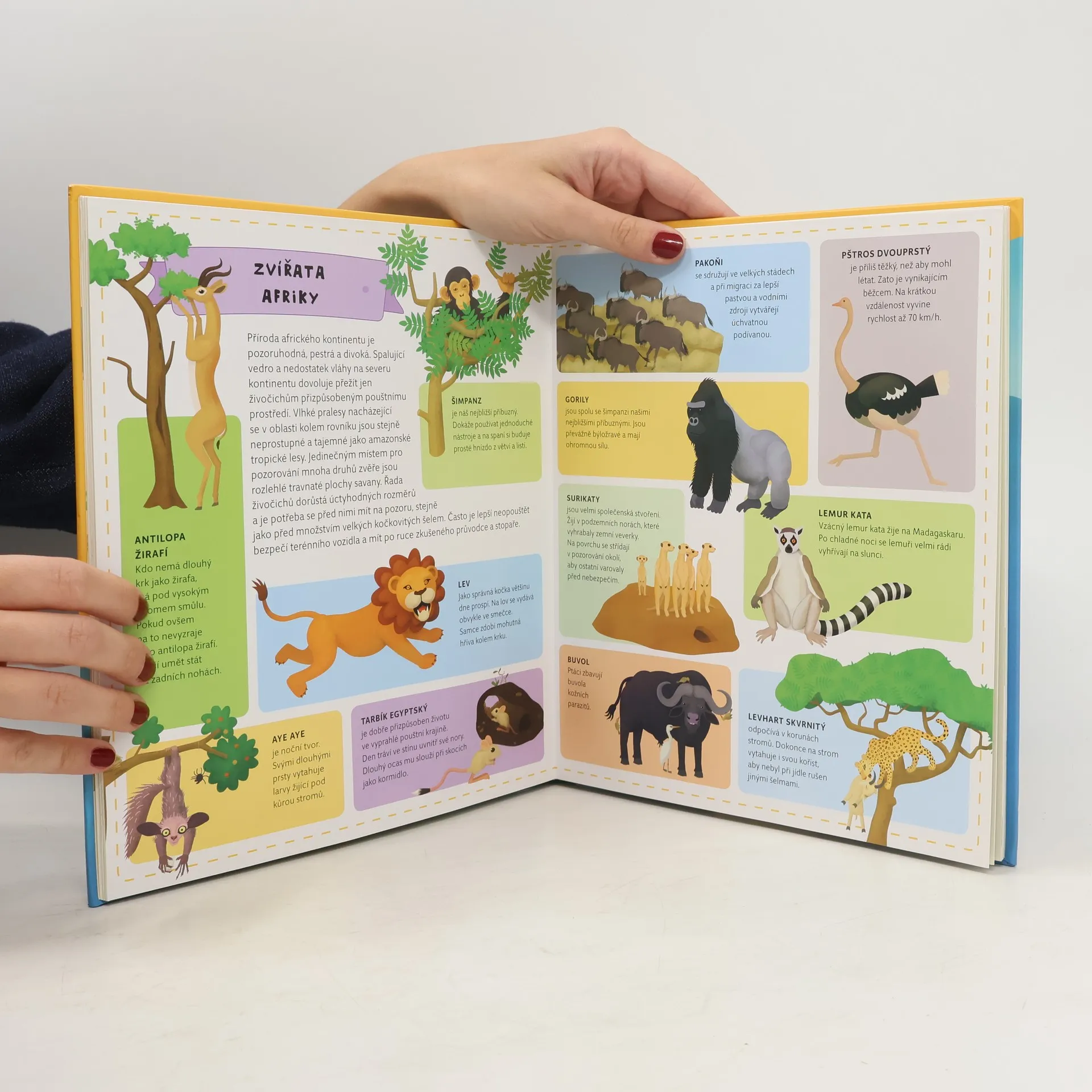 Objevujte svět zvířat v sedmi rozkládacích mapách Ta nejzajímavější zvířata všech sedmi světadílů přináší atlas zvířat pro malé čtenáře od šesti let. Sedm světadílů na sedmi rozkládacích mapách spolu s třinácti přiloženými knížečkami představuje téměř dvě stě těch nejatraktivnějších zvířat z celého světa, typických zástupců každého kontinentu. V atlase najdeš vše od obyčejného zajíce až po tapíra čabrakového nebo rypouše sloního, a to v nádherných ilustracích a se zajímavými texty. Vránu nebo medvěda asi znáš, ale víš, kdo je vakokrt písečný nebo co dělá vačice, když je v ohrožení života? Víš, jaký živočich se skrývá pod názvem kudu velký? Pokud ano, pak jsi skvělý malý zoolog. Pokud ne, pak právě pro tebe je náš atlas zvířat. V atlase nalezneš: • Všechny světadíly v podobě sedmi rozkládacích map, • barevné a zábavné ilustrace, • vložené sešitky s dalšími podrobnostmi a informacemi, • více než 200 živočichů z celého světa, • přirozená stanoviště zvířat různých kontinentů • a mnoho dalšího.