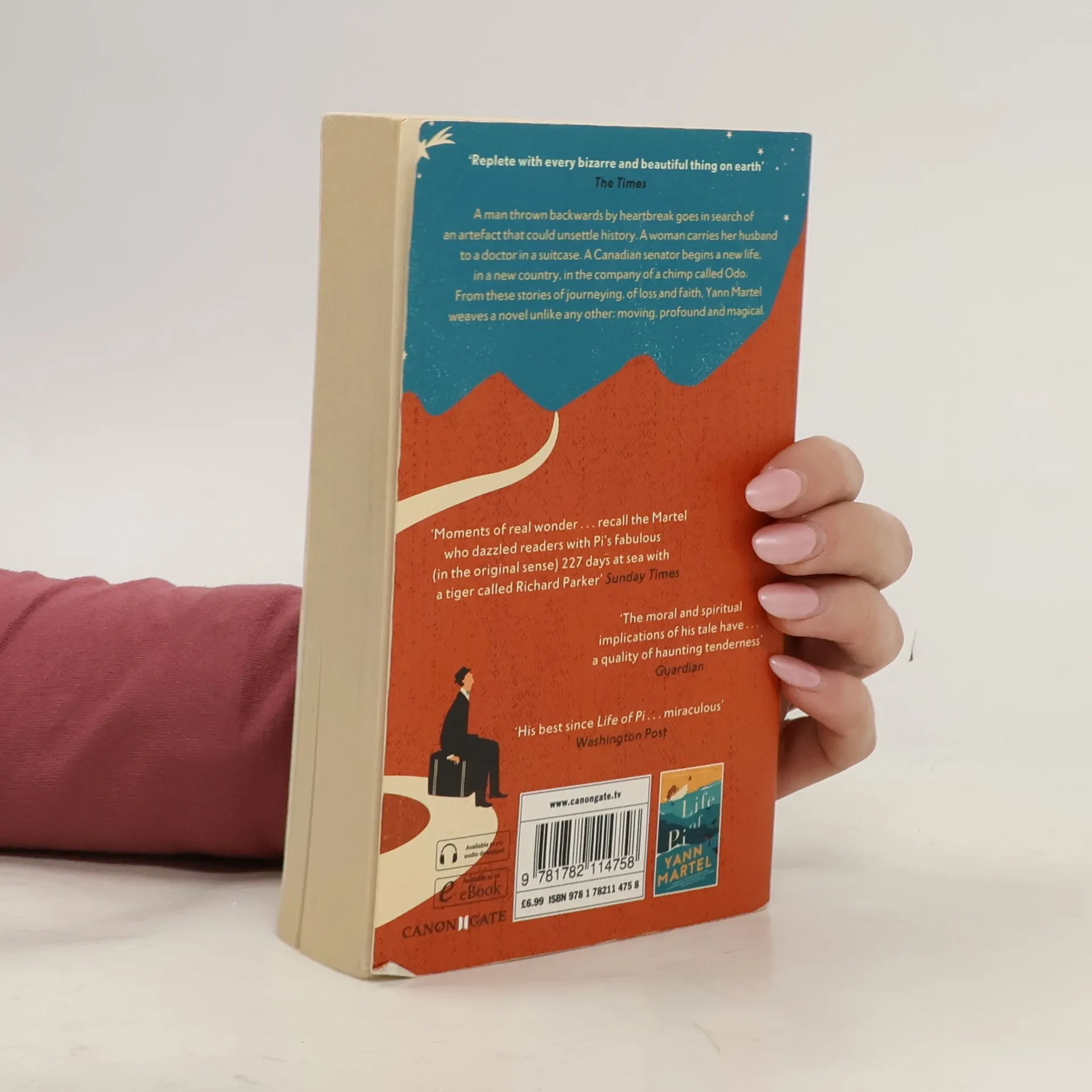 A man thrown backwards by heartbreak goes in search of an artefact that could unsettle history. A woman carries her husband to a doctor in a suitcase. A Canadian senator begins a new life, in a new country, in the company of a chimp called Odo. From these stories of journeying, of loss and faith, Yann Martel weaves a novel unlike any other: moving, profound and magical.