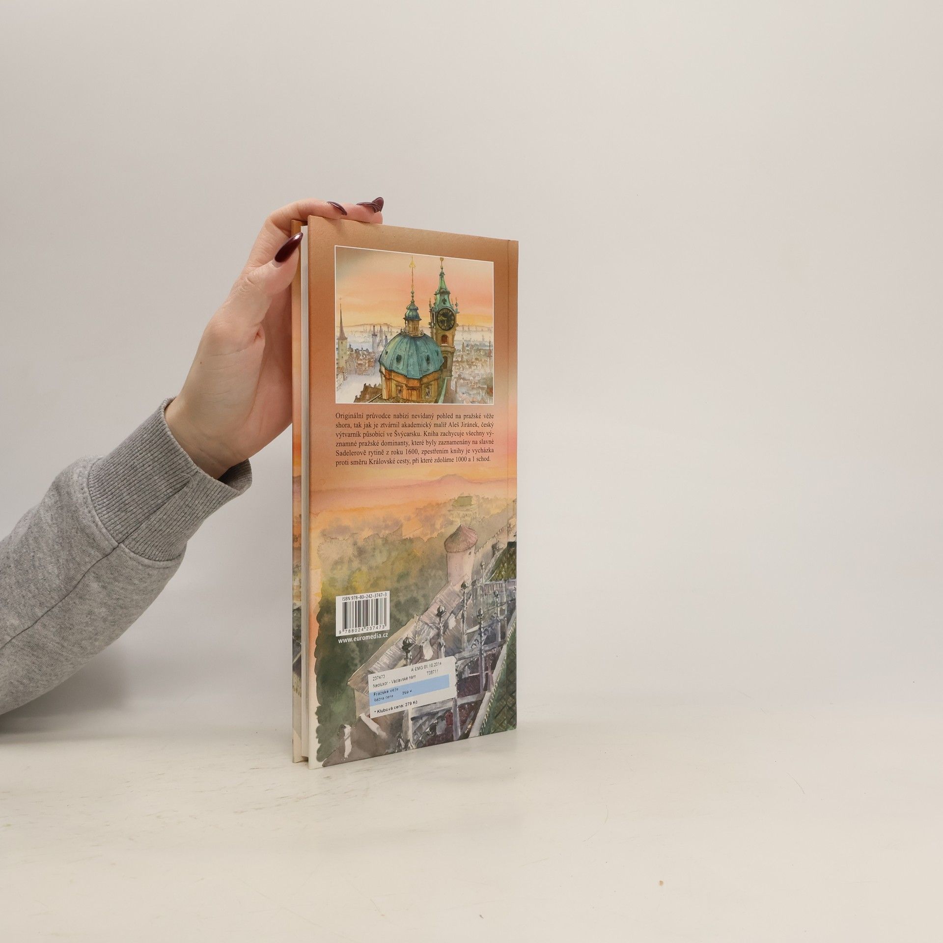 Na věže se obvykle hledí zdola anebo se z nich vyhlíží na město. Tato půvabná knížka představuje pražské věže shora, tak jak je umělecky ztvárnil český malíř žijící ve Švýcarsku Aleš Jiránek. Mistr mobilní perspektivy nás pozve nejprve na Procházku tisíce a jednoho schodu – magickou honbu za dračí ženou proti směru Královské cesty, poté se vydáme na Cestu nad městem, mapující všechny významné dominanty Prahy, které byly zaznamenány na slavné Sadelerově rytině z roku 1600. Zasvěceným textem ilustrace doprovodila Jana Jůzlová.